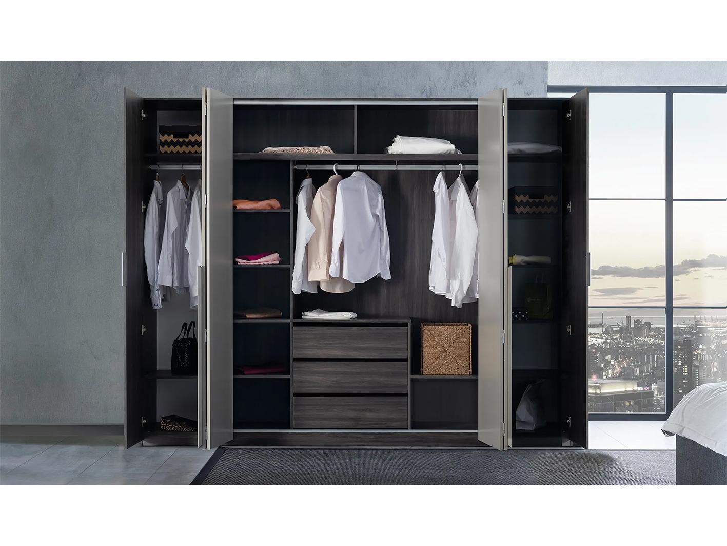 يضم دولاب أديسا عدة أرفف داخلية، وقضبان تعليق ملابس، وأدراج داخلية لتخزين مختلف الأغراض، مما يوفر لك الحلول العملية لحفظ وتنظيم ملابسك بشكل يومي. كما يتميز هذا التصميم بأبواب مغلقة تحافظ على نظافة الملابس وتحميها من الغبار.