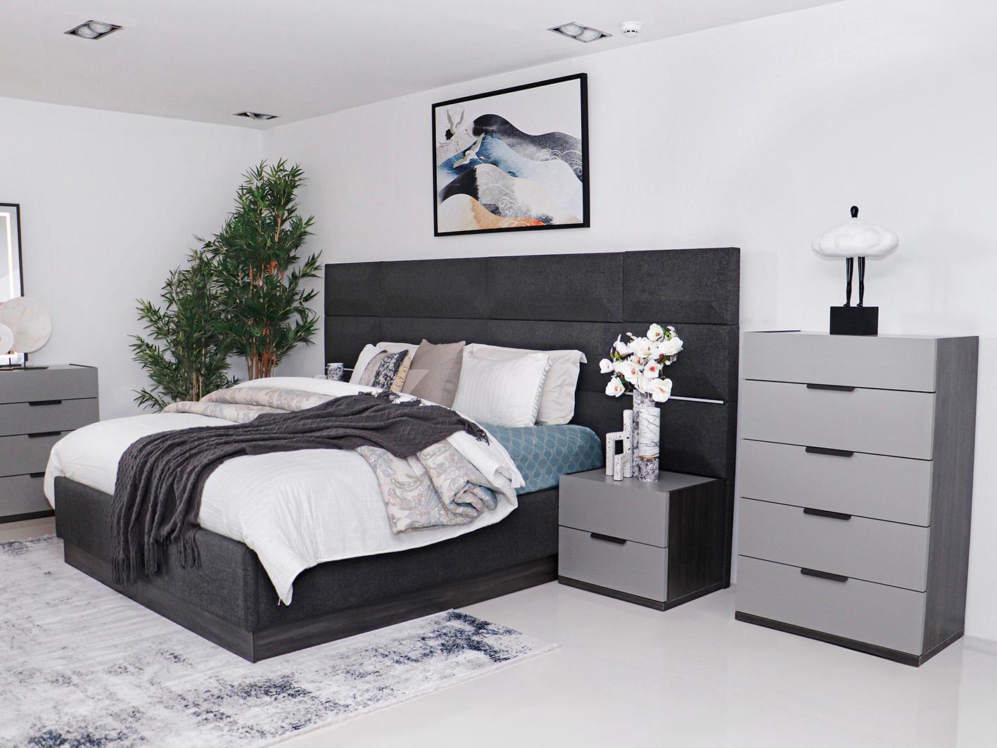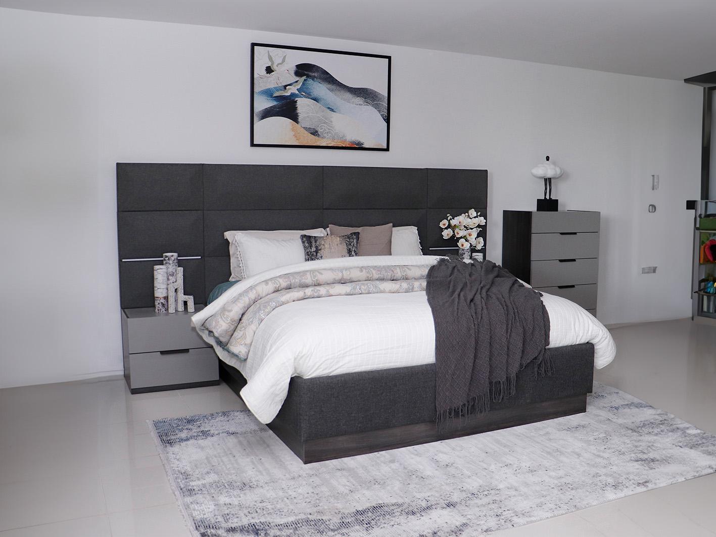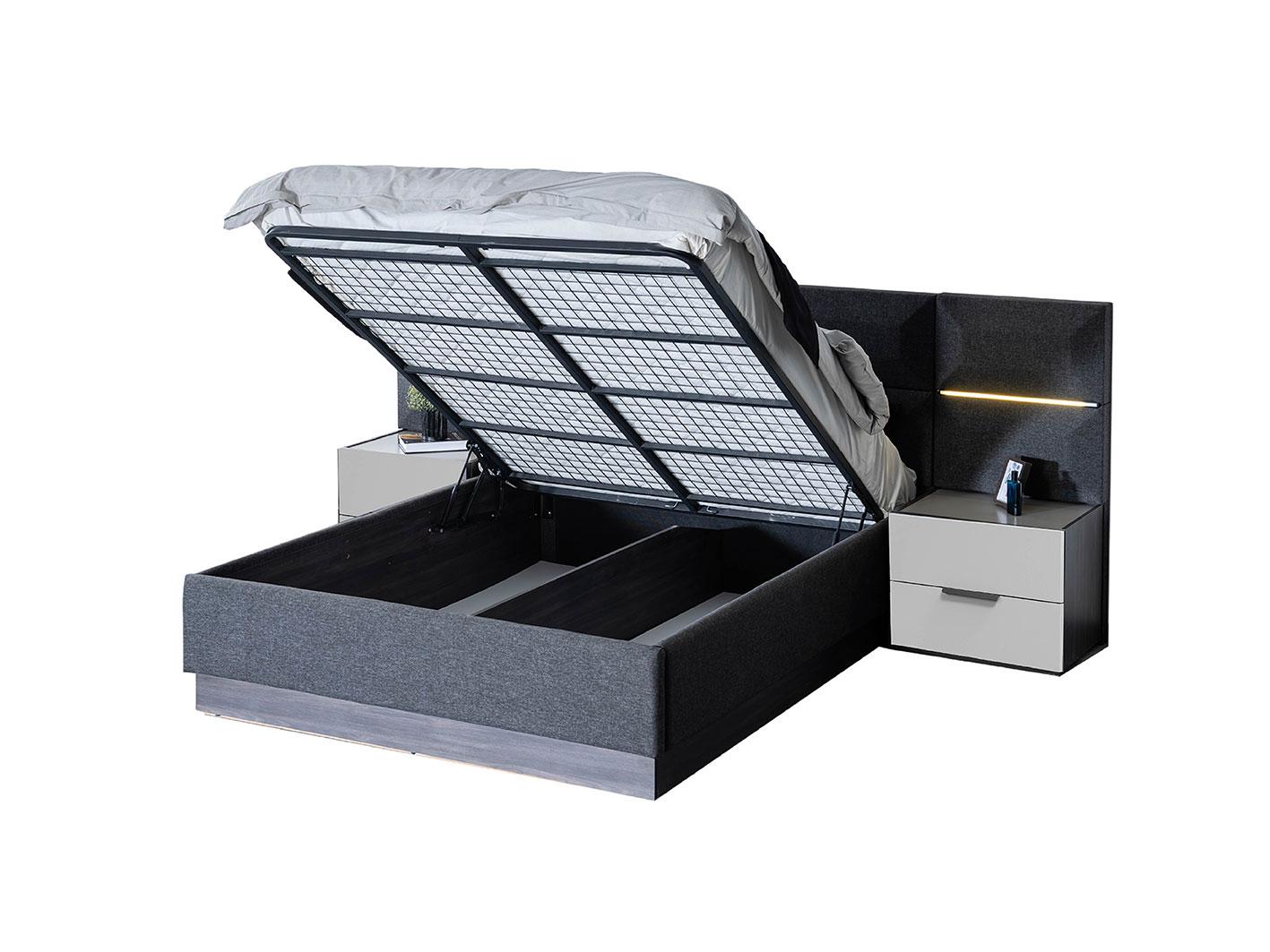 • سرير مزدوج بمقاس 180×200 سم: يتميز السرير بمساحة تخزين هيدروليكية تساعد في تنظيم الأغطية والوسائد وغيرها من الأغراض.