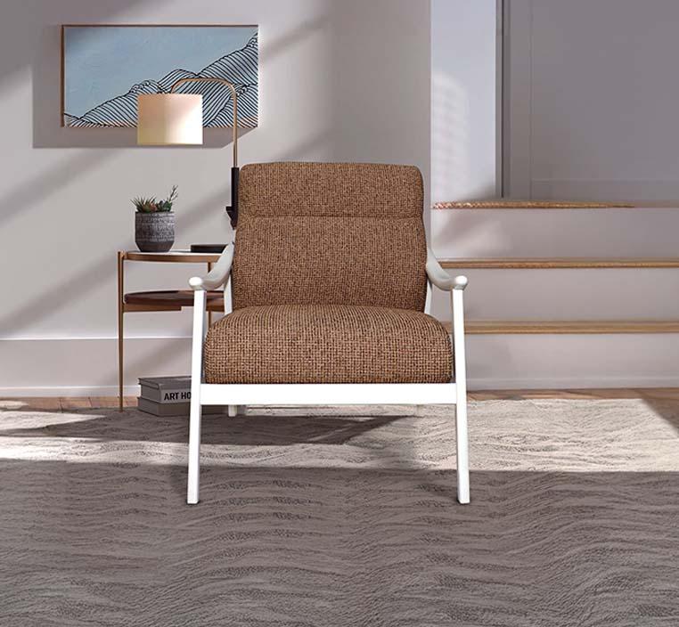 تصميم عصري أنيق: يتميز كنب أكورسا الفردي بتصميم حديث وجذاب، يجمع بين الشكل الهندسي المتوازن والخطوط البسيطة، مما يضفي عليه طابعًا عصريًا ينسجم مع مختلف أنواع الديكور الداخلي. يتميز بمقعد بني بنسيج مموج يضفي لمسة جمالية وحسية، بينما يضيف الإطار الخشبي الأبيض لمسة من التباين الراقي.