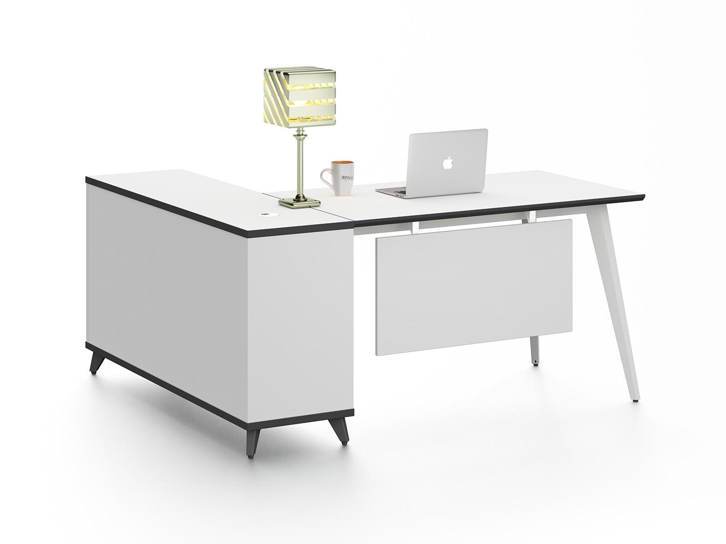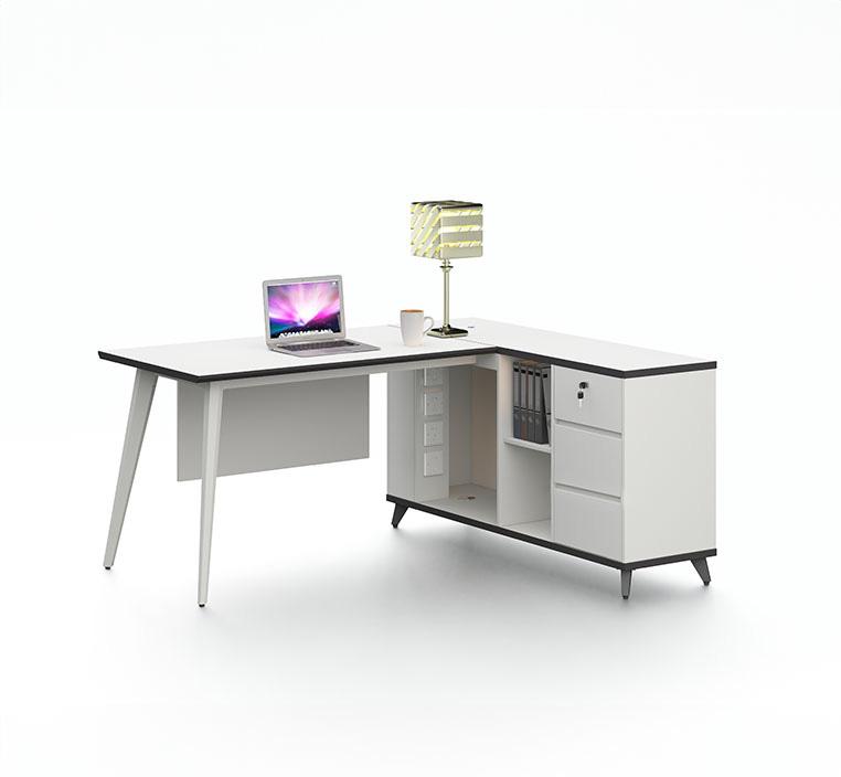 يتميز المكتب بأرفف جانبية وخزانة متعددة الاستخدامات، مما يجعله مثاليًا لتخزين الملفات، الكتب، واللوازم المكتبية بشكل منظم وسهل الوصول.