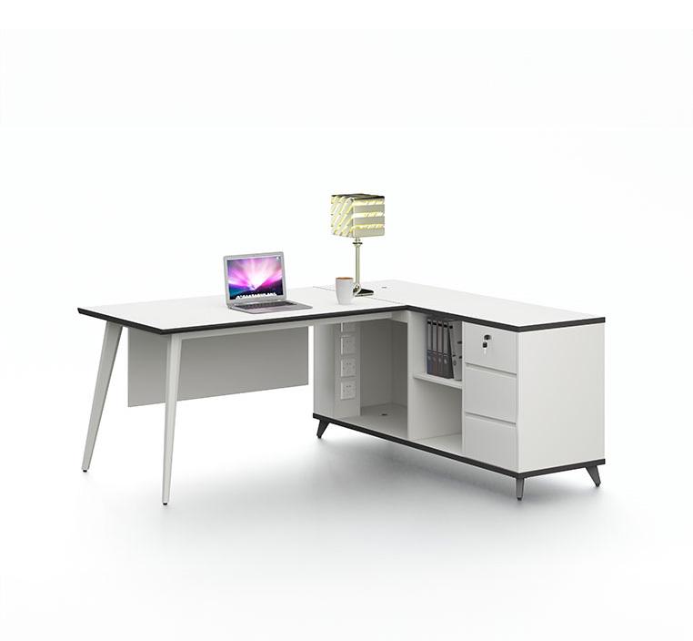 • يتميز المكتب بأرفف جانبية وخزانة متعددة الاستخدامات، مما يجعله مثاليًا لتخزين الملفات، الكتب، واللوازم المكتبية بشكل منظم وسهل الوصول.