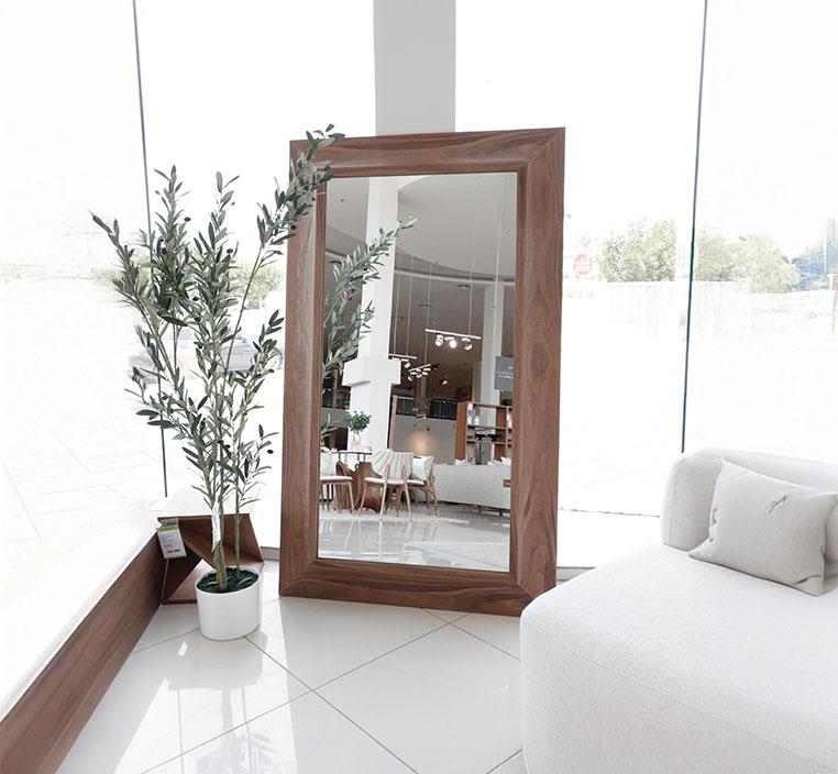 تم تصنيع إطار المرآة من خشب طبيعي بلون بني دافئ يجسد جمال الطبيعة وصلابتها، ويمنح منزلك شعورًا بالدفء والاستقرار. تم اختيار الخشب بعناية فائقة لضمان المتانة والجودة العالية، مع لمسات نهائية مصقولة بعناية تعكس الذوق الرفيع والبراعة الفنية.