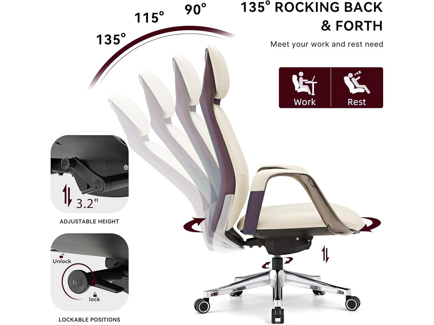زاوية إمالة تصل حتى 135°، مع إمكانية التعديل لتناسب وضعيتي العمل والاسترخاء.