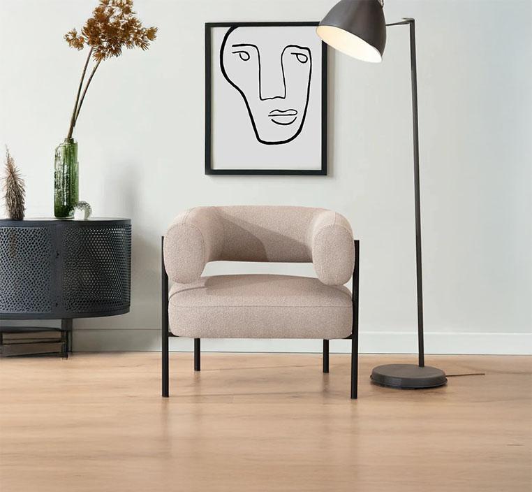 تم تنجيد الكنب بقماش البوكليه الفاخر، وهو نسيج منسوج بخيوط غير منتظمة الشكل تمنحه مظهراً غنياً وملمسًا ناعماً يشبه الحلقات المتشابكة. هذا القماش الفريد لا يعزز فقط من جمال الكنب، بل يضيف أيضًا لمسة دافئة وأنيقة تعكس الذوق الرفيع. كما أنه يتميز بمتانته العالية وسهولة تنظيفه، مما يجعله عمليًا وأنيقًا في آنٍ واحد.