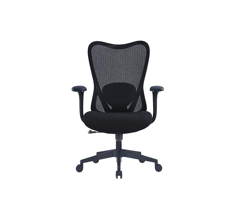 الظهر مصنوع من بولي بروبيلين أسود مع شبكة تهوية ودعامة قطنية قابلة للتعديل. هذا التصميم يحافظ على برودة الجسم ويمنع تراكم الحرارة أثناء العمل الطويل.