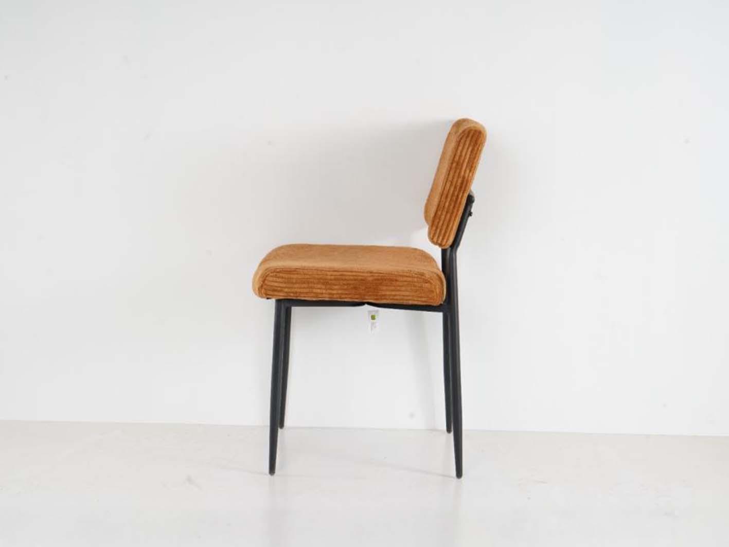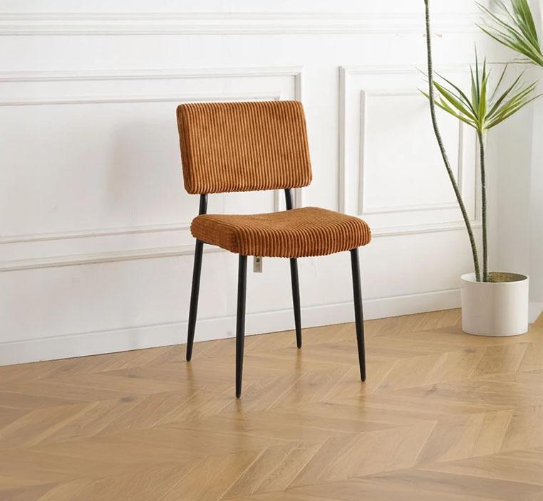 تغطي خامة القماش المخملي الناعم المقعد ومسند الظهر، وتتميز بنقشة طولية أنيقة تبرز جمال اللون وتمنح ملمسًا مريحًا عند الاستخدام. يوفّر الحشو الداخلي دعماً مريحاً للظهر والفخذين، مما يجعل مثاليًا للجلسات الطويلة سواء على طاولة الطعام أو في ركن العمل أو القراءة.
