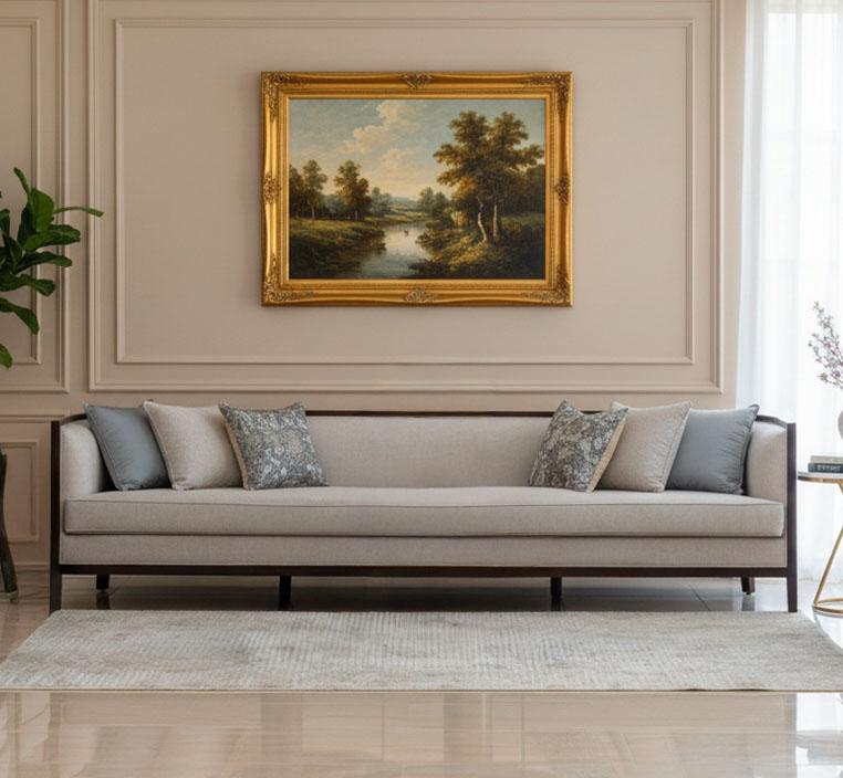 • إطار خشبي صلب: يتميز إطار الكنبة بصنعه من خامات خشبية عالية الجودة وتتميز بالصلابة والقوة تضمن استدامة الجودة والتحمل.