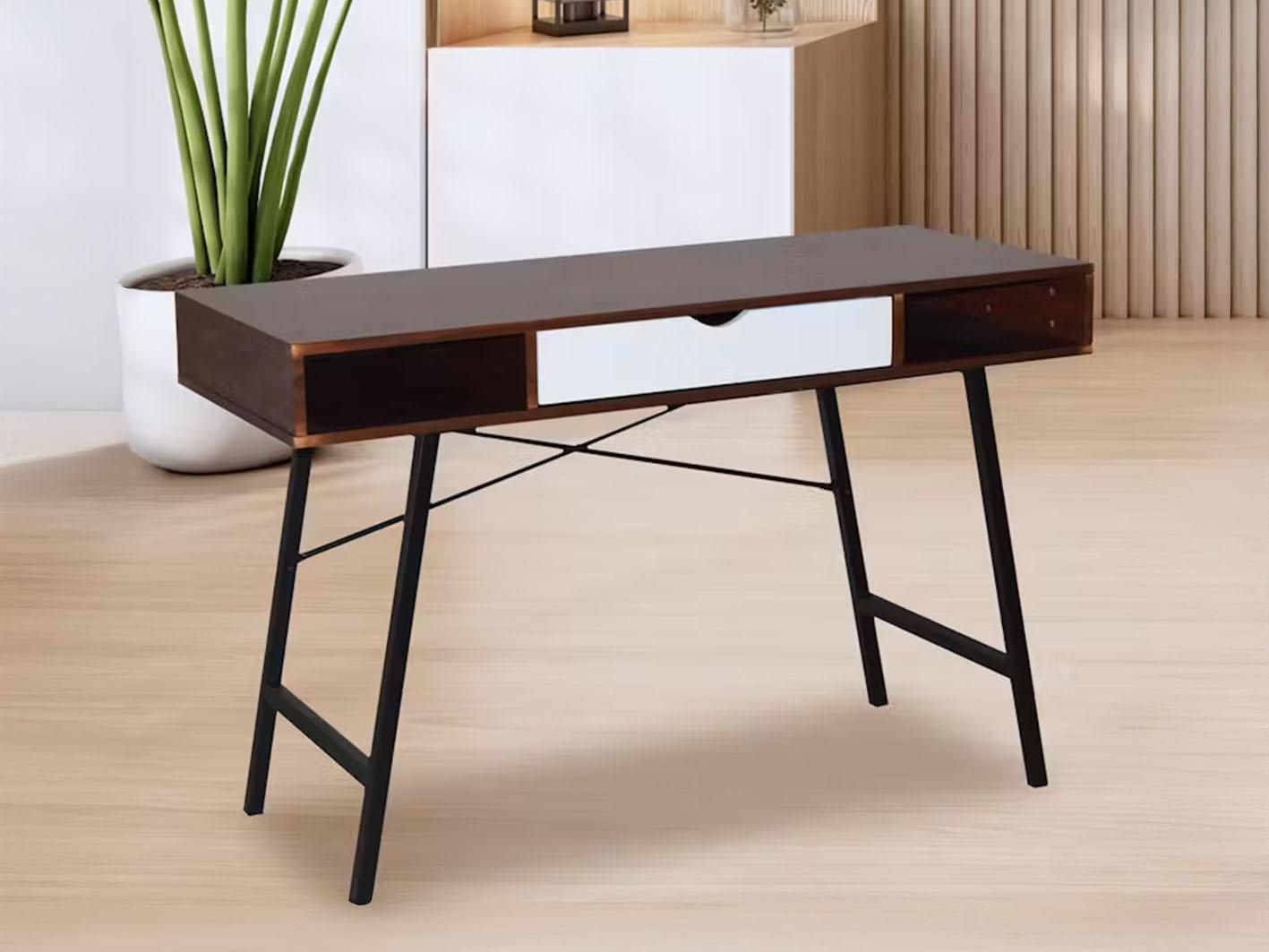 صُمم المكتب من خشب ليفي متوسط الكثافة مع تغليف من PVC وإطار معدني بلمسة نهائية من الإسبريسو/الأسود. هذا يضمن استقرار المكتب ومتانته لفترة طويلة.