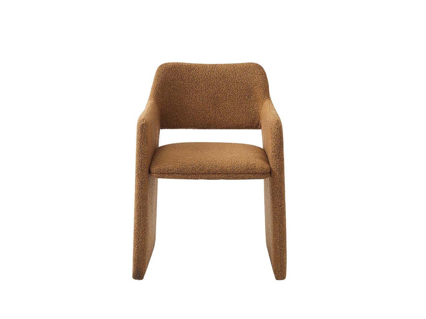 يأتي الكرسي مُنجّدًا بقماش البوكلية الفاخر، الذي يضفي لمسة من الدفء والنعومة. هذا النوع من القماش لا يقدّم فقط مظهرًا أنيقًا، بل أيضًا ملمسًا مريحًا للجلوس الطويل، كما أنه متوفر بعدة ألوان عصرية لتناسب جميع الأذواق والديكورات.