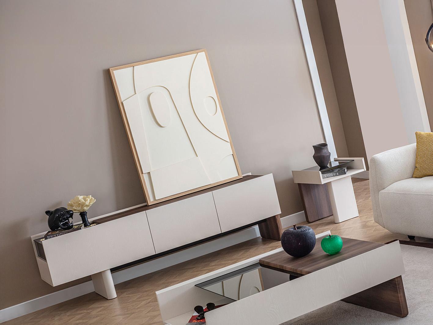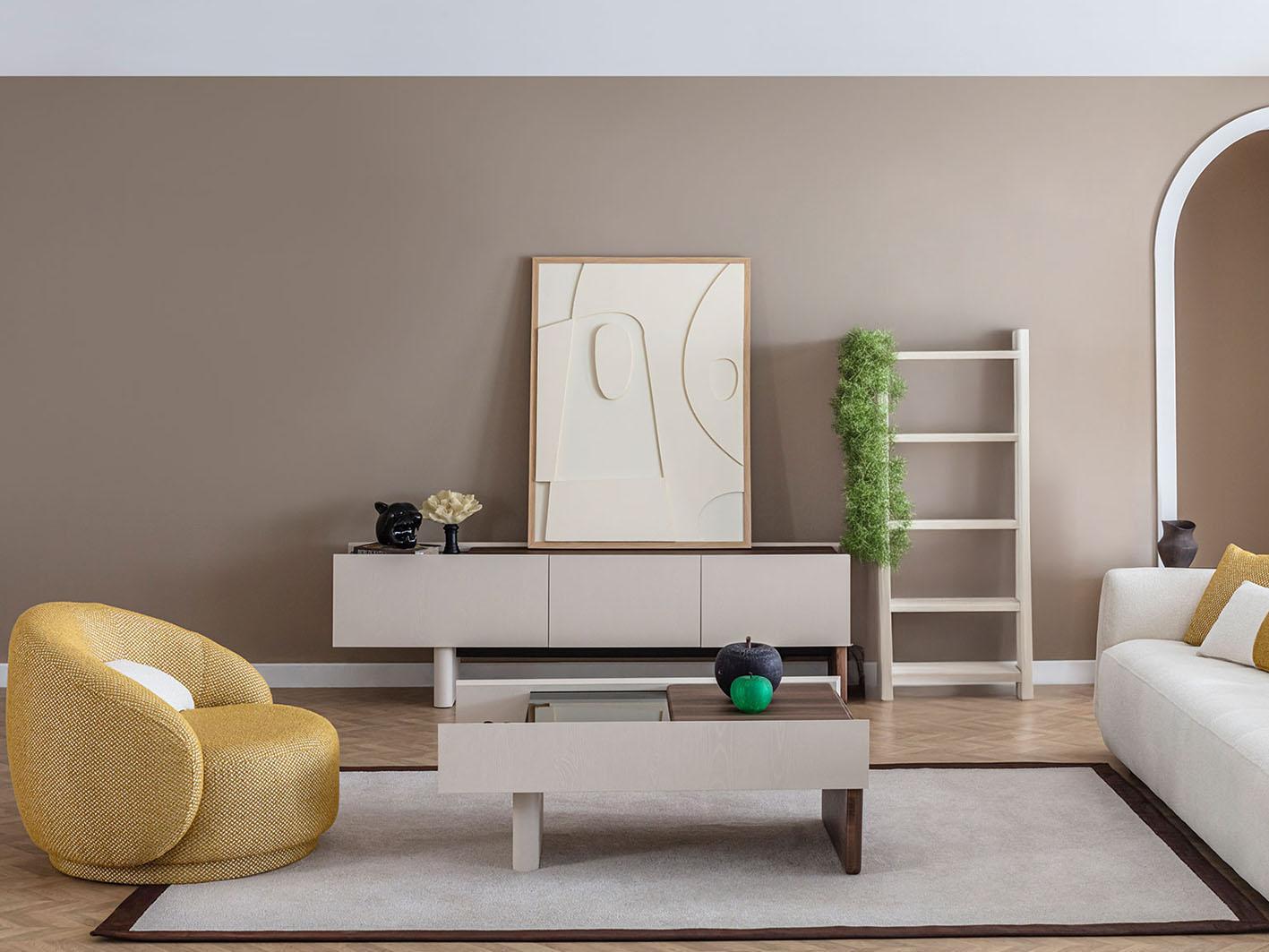 مزيج اللون الكريمي مع لمسات خشبية داكنة يضيف دفئًا وأناقة للمساحات الداخلية.