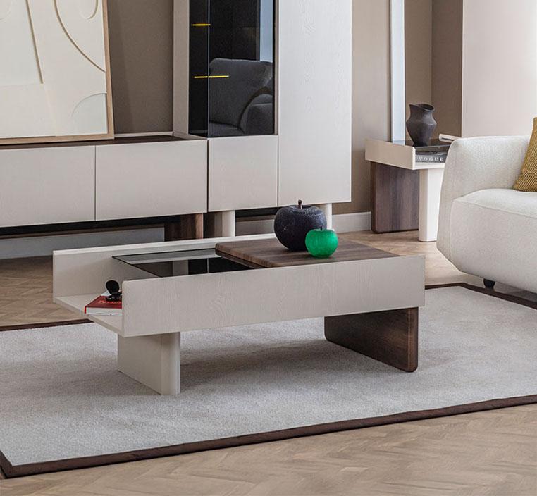 توفر مساحة سطحية مثالية لوضع المشروبات، الكتب، أو الزخارف. كما تحتوي على تصميم ذكي يتيح الاستخدام كمساحة تخزين .