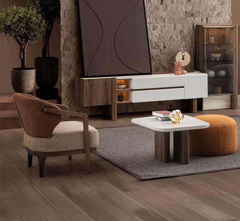 يتميز بمزيج متناغم من الألوان البنية الطبيعية التي تضفي شعورًا بالدفء والراحة على أي مساحة.