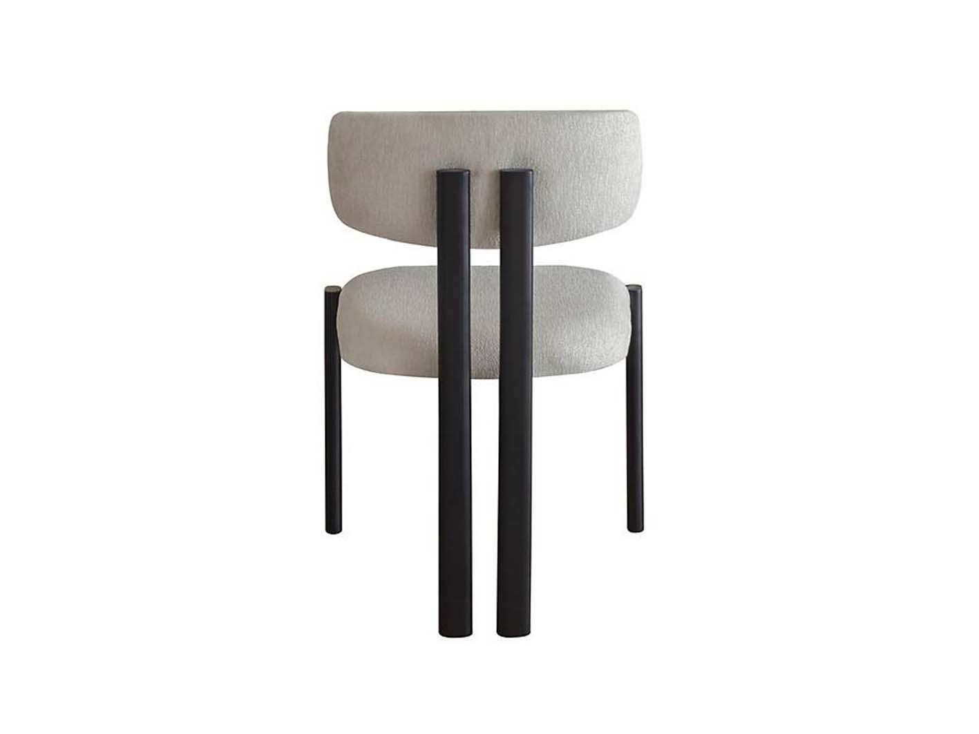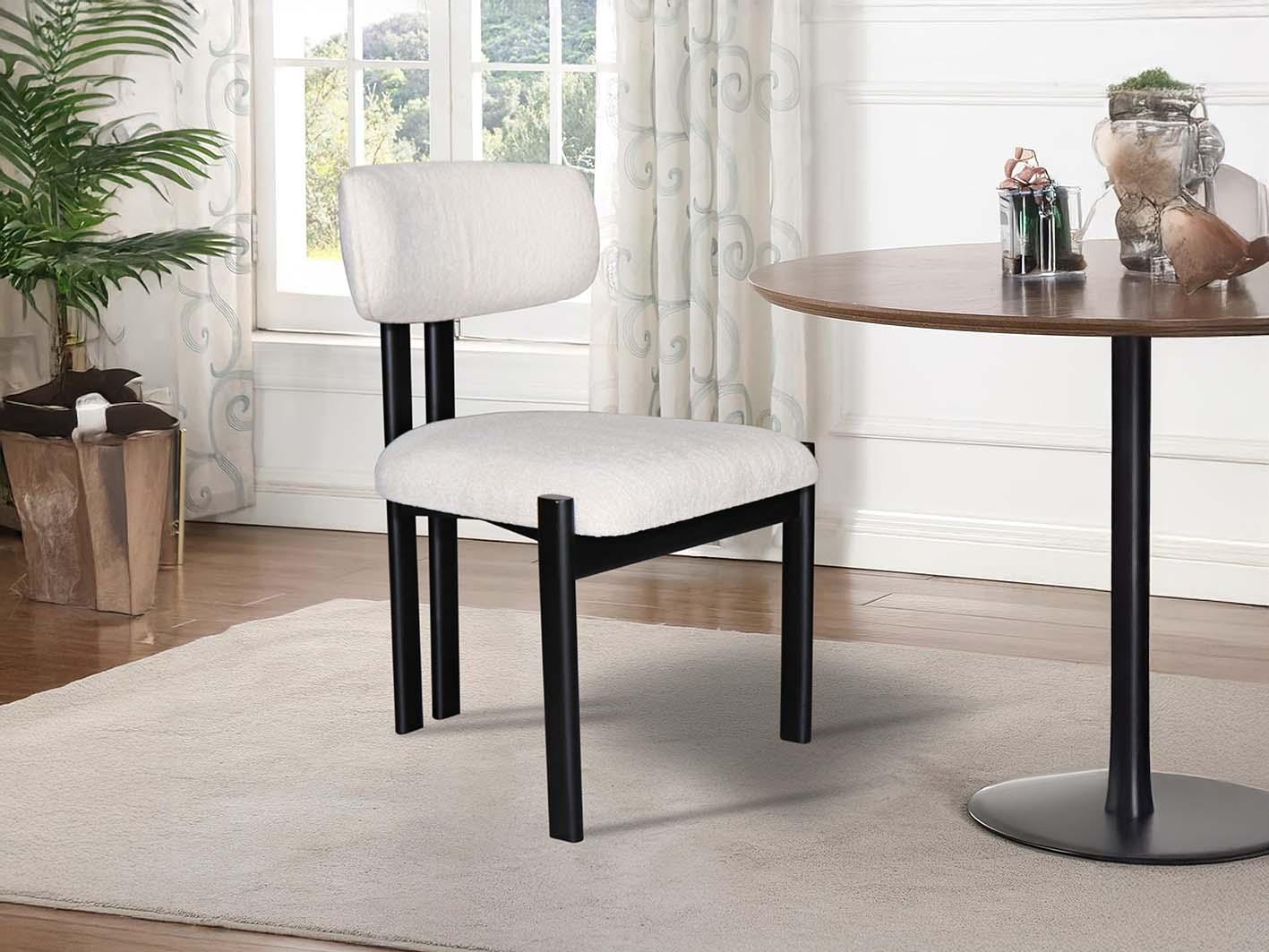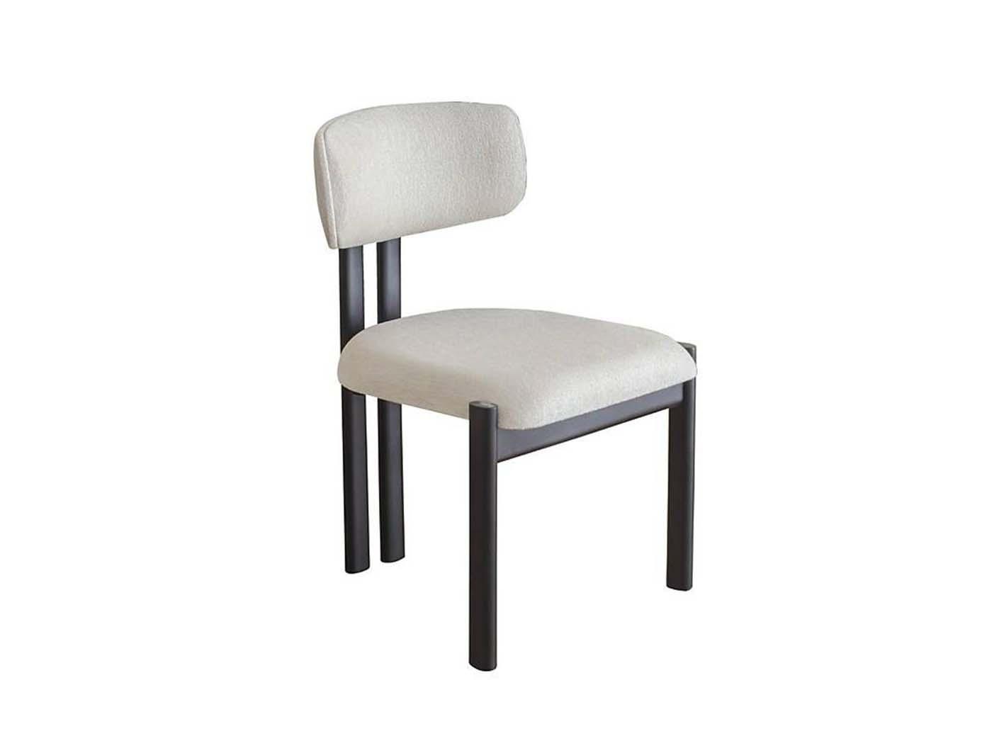 الهيكل مصنوع من الخشب السولد الأسود المتين، ما يضمن لك استدامة وصلابة تدوم لسنوات طويلة. أما المقعد والظهر، فقد تم تنجيدهما باستخدام قماش البوكلية الفاخر بلون أبيض هادئ، مما يوفر لك الراحة والدعم أثناء الجلوس لفترات طويلة. بفضل تصميمه المريح والمبطن، يتيح لك الكرسي الشعور بالراحة أثناء تناول الطعام أو الاسترخاء، كما يمكن استخدامه في أماكن متعددة مثل غرف الجلوس والمكاتب المنزلية وحتى غرف النوم.
