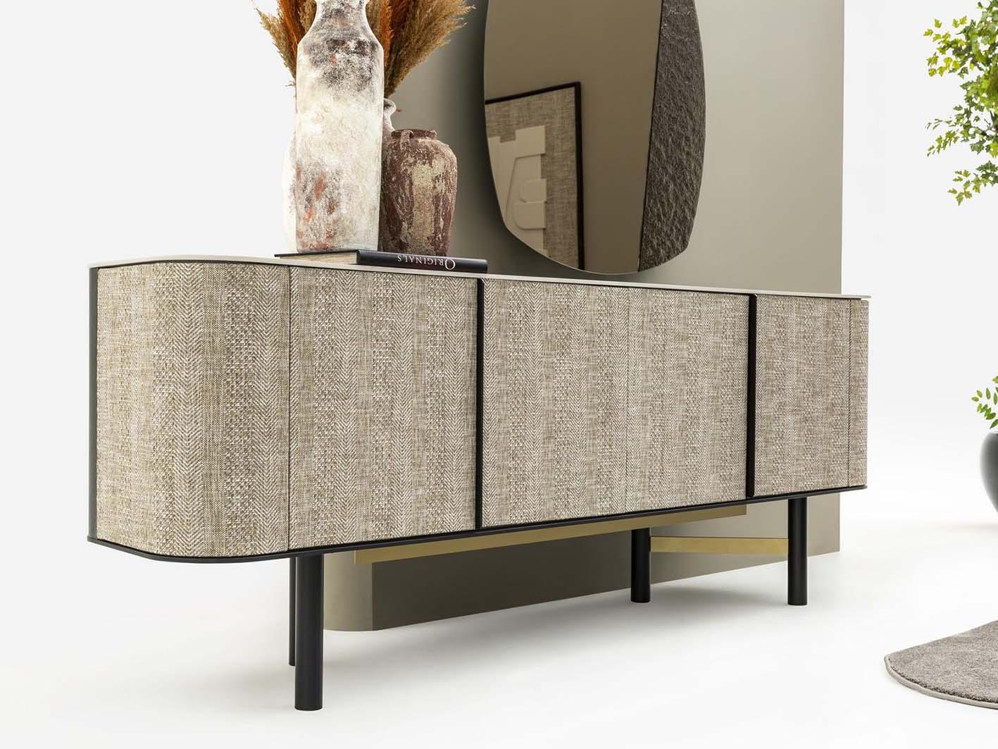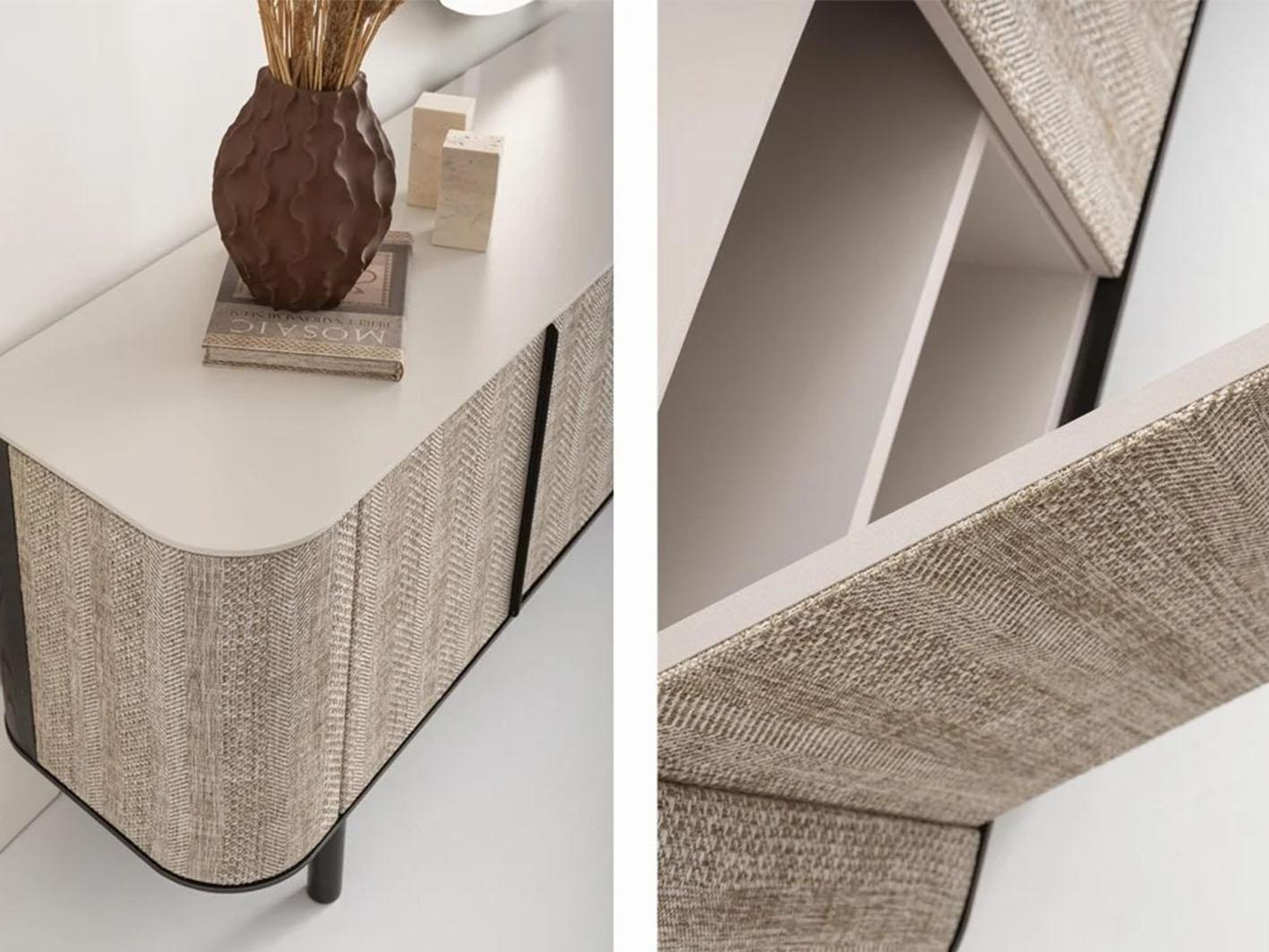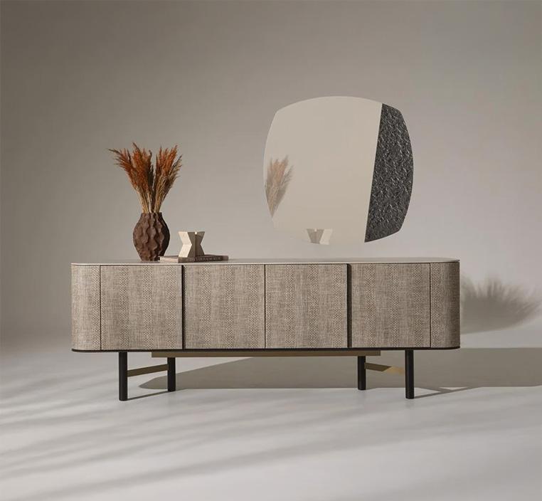 بتشطيب مميز بلون الاسود مع البيج، وإضافة سطح مميز بملمس يشبه الخيزران (Wicker Look)، يقدم كونسول بيليز مظهرًا فريدًا يلفت الأنظار ويضفي شعورًا بالدفء والرقي في الوقت ذاته.