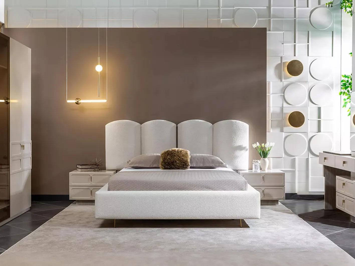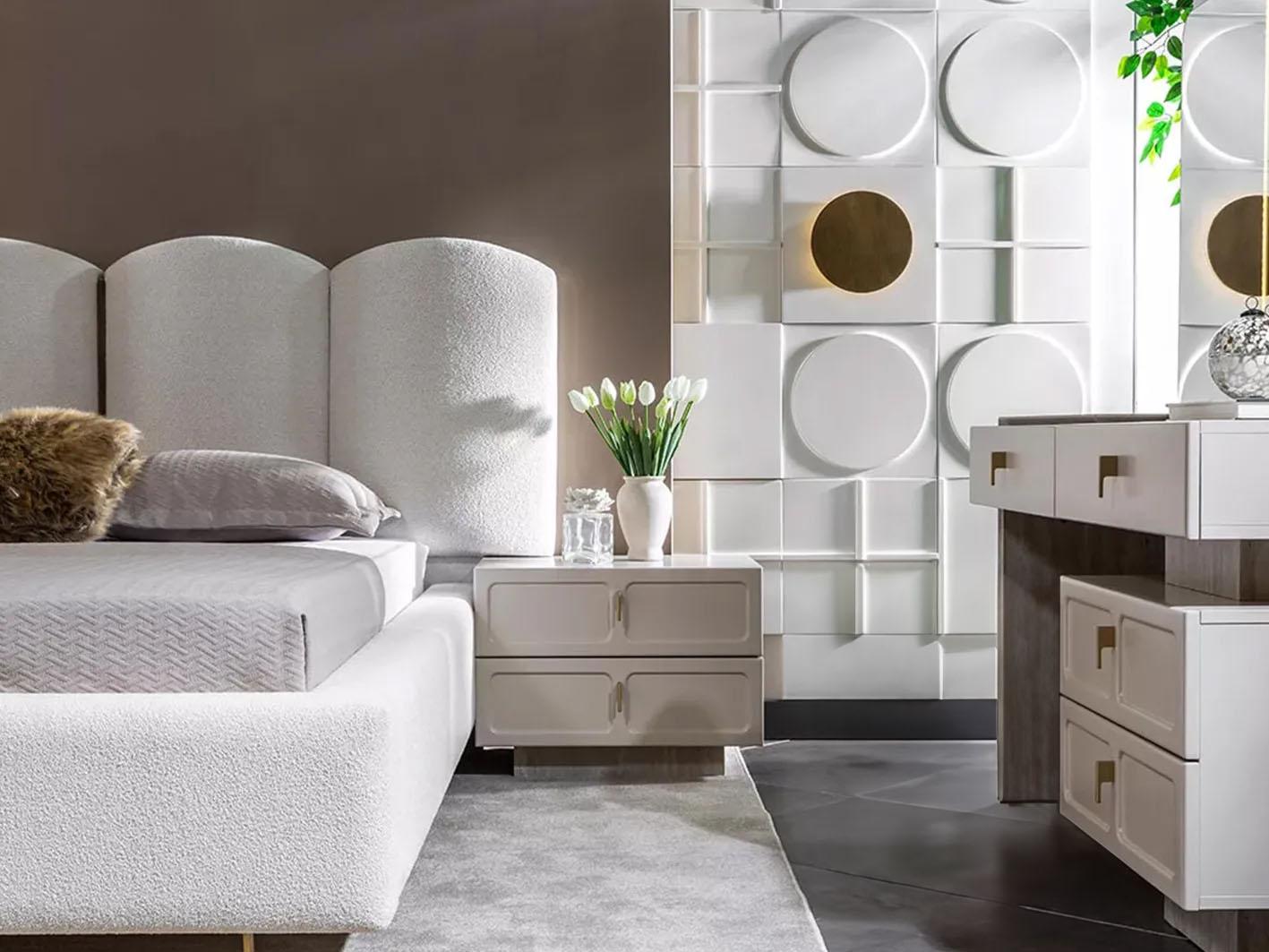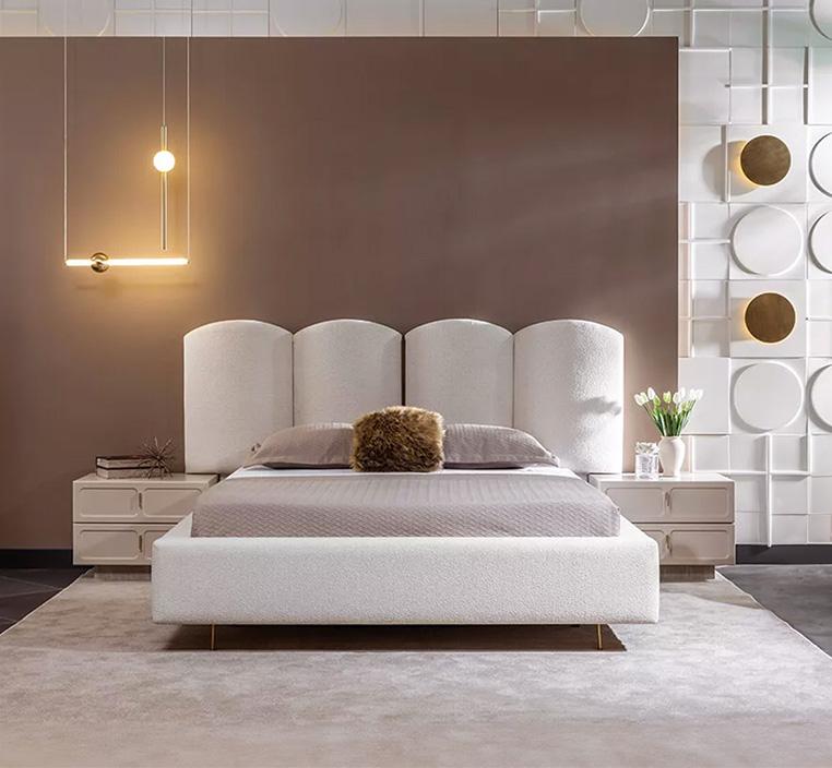 أضف لمسة من الفخامة والرفاهية إلى غرفة نومك مع طقم غرفة نوم دانتي باللون الكريمي. هذا الطقم المتكامل يجمع بين التصميم الأنيق والوظائف العملية ليقدم لك تجربة نوم مريحة وأنيقة. يتميز السرير المزدوج بحجم 200 × 200 سم بأنه منجد بقماش فاخر، مما يضفي شعورًا بالراحة والفخامة في نفس الوقت.