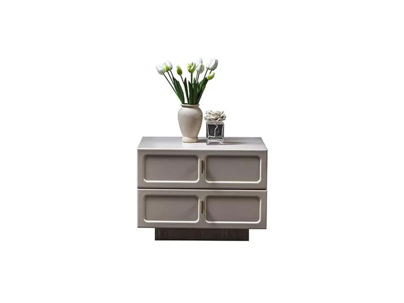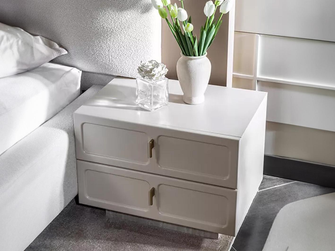 • طقم غرفة نوم دانتي ليس مجرد قطع أثاث؛ إنه انعكاس لأسلوب حياتك الراقي. الطاولتان الجانبيتان توفران لك مساحة مثالية لوضع أغراضك الشخصية، بينما تتيح لك وحدة الأدراج والتسريحة مع المرآة ترتيب أغراضك بشكل منظم وأنيق. المقابض المعدنية والأرجل الذهبية تضيف لمسة من الفخامة العصرية التي تميز هذا الطقم عن غيره.
