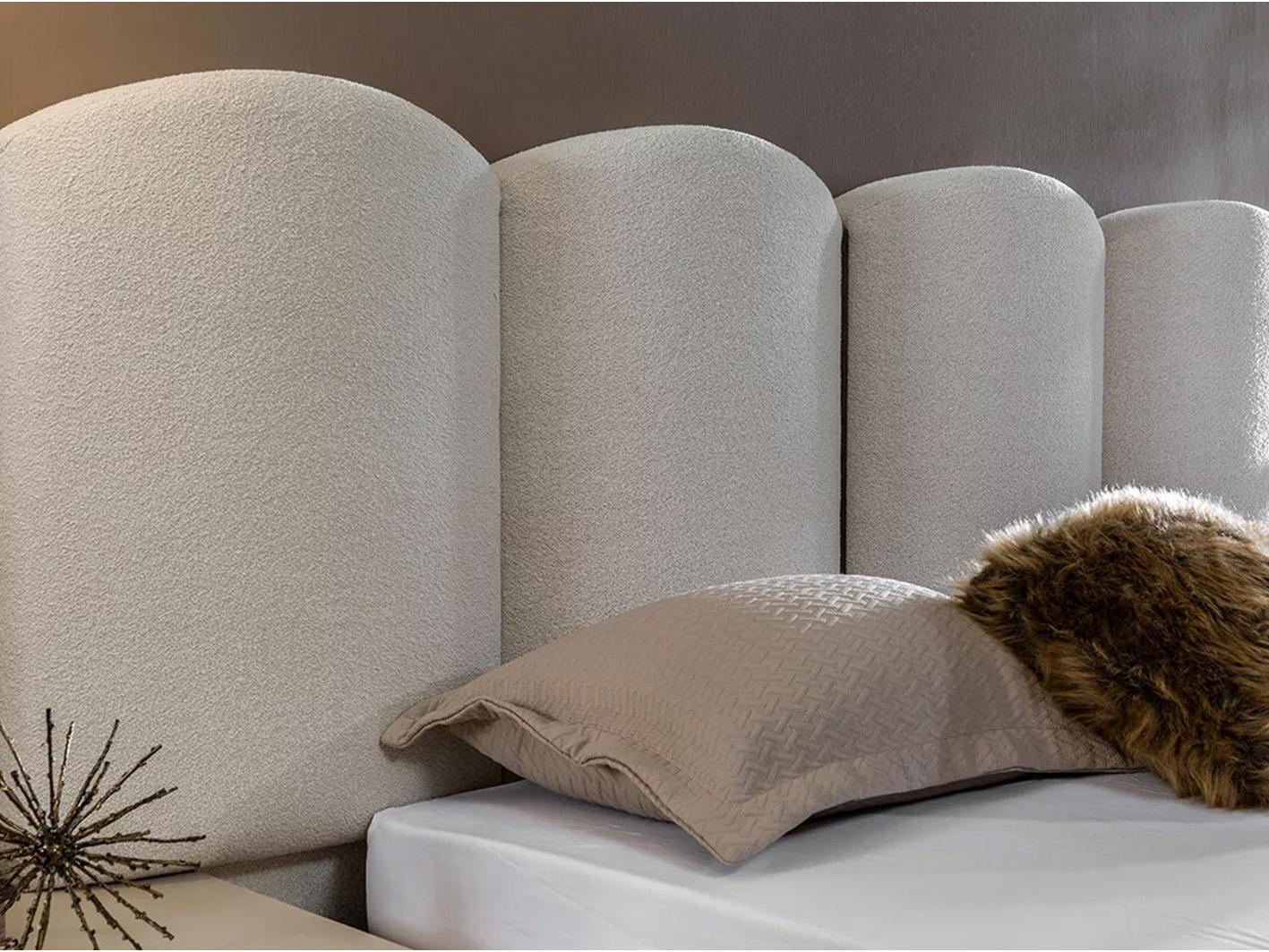 • تصميم فاخر: يتألف الطقم من سرير مزدوج 200 × 200 سم منجد بقماش فاخر.