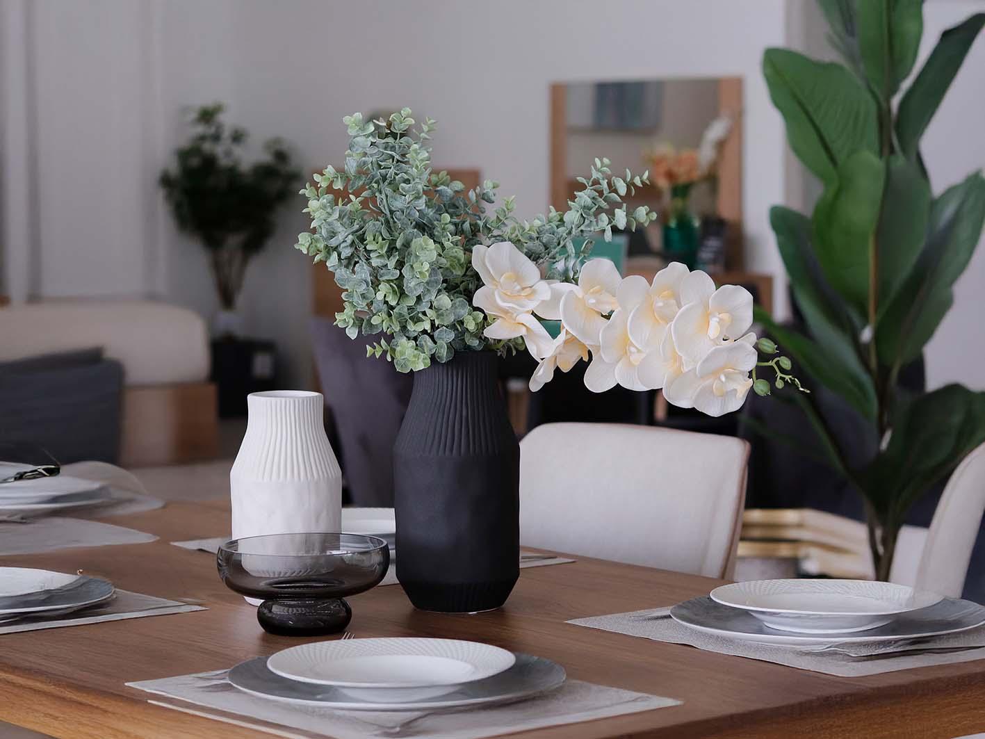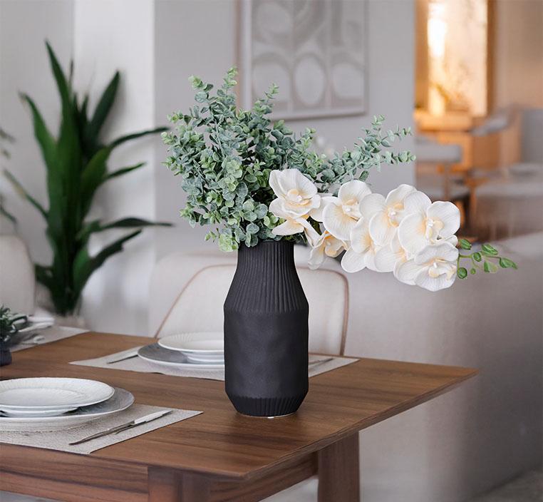 أضف لمسة من الفخامة العصرية إلى مساحتك مع هذه الفازة المصنوعة من السيراميك الفاخر باللون الأسود الأنيق. بتصميمها الانسيابي ، تضيف الفازة طابعًا مميزًا يناسب مختلف أنماط الديكور، سواءً الكلاسيكي أو الحديث. مثالية لتزيين الطاولات أو الأرفف، ويمكن استخدامها كقطعة مستقلة أو لحمل الأزهار الطبيعية أو الصناعية. خيار مثالي لعشاق الذوق الراقي والتفاصيل الدقيقة.