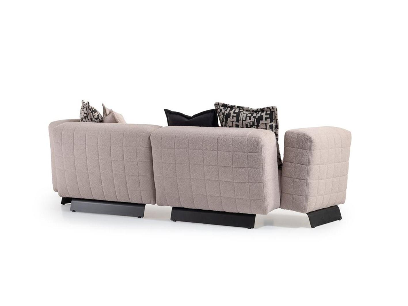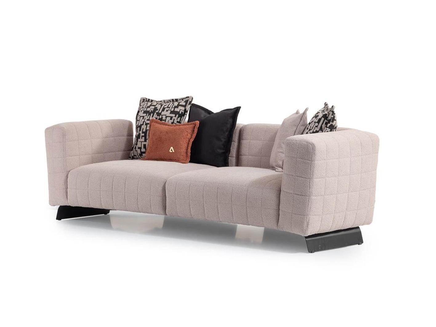 تجسد هذه الكنبة الفاخرة ذات الثلاثة مقاعد جوهر التصميم الحديث , يعد كنب مودرن فورينزا إضافة رائعة لغرفة المعيشة الأنيقة الخاصة بك وتعدك بإحساس دافئ بسبب إسفنج البولي يوريثان وألياف البوليستر وحشو المقعد. تتميز بتنجيد من القماش الناعم ومساند للأذرع مائلة للخارج قليلا تعطي شكلا مميزا للكنبة، في حين أن ظهرها المستقيم وأرجلها المغايرة المصممة بشكل رائع من خامة الاستنلس ستيل ترفع من مظهرها وتزيد من ثباتها وتحملها. تتميز هذه الكنبة العصرية بتشكيلة من الخداديات الرائعة والخفيفة التي تتمشي مع الديكورات المختلفة. انها استثمار رائع لغرفة معيشتك .