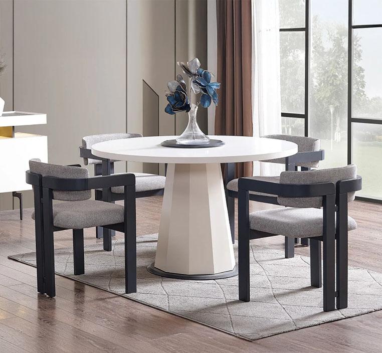 أضف لمسة من الأناقة إلى غرفة طعامك مع هذه الطاولة الدائرية باللون الأبيض النقي. بتشطيب أنيق من الشيبورد وأرجل خشبية طبيعية، تجمع هذه الطاولة بين البساطة والرقي. تصميمها العملي يتيح لك تنسيقها مع كراسي من اختيارك لتناسب ذوقك الخاص. مثالية للمساحات الصغيرة والمتوسطة، وتمنحك إحساسًا بالراحة والانسيابية أثناء الاستخدام. صنعت في تركيا بجودة عالية ولمسة فنية دقيقة، لتكون إضافة مثالية تدوم لسنوات. لا تشمل الكراسي. استمتع بجلسات طعام دافئة مع عائلتك أو ضيوفك وسط تصميم أنيق يعكس ذوقك العصري.