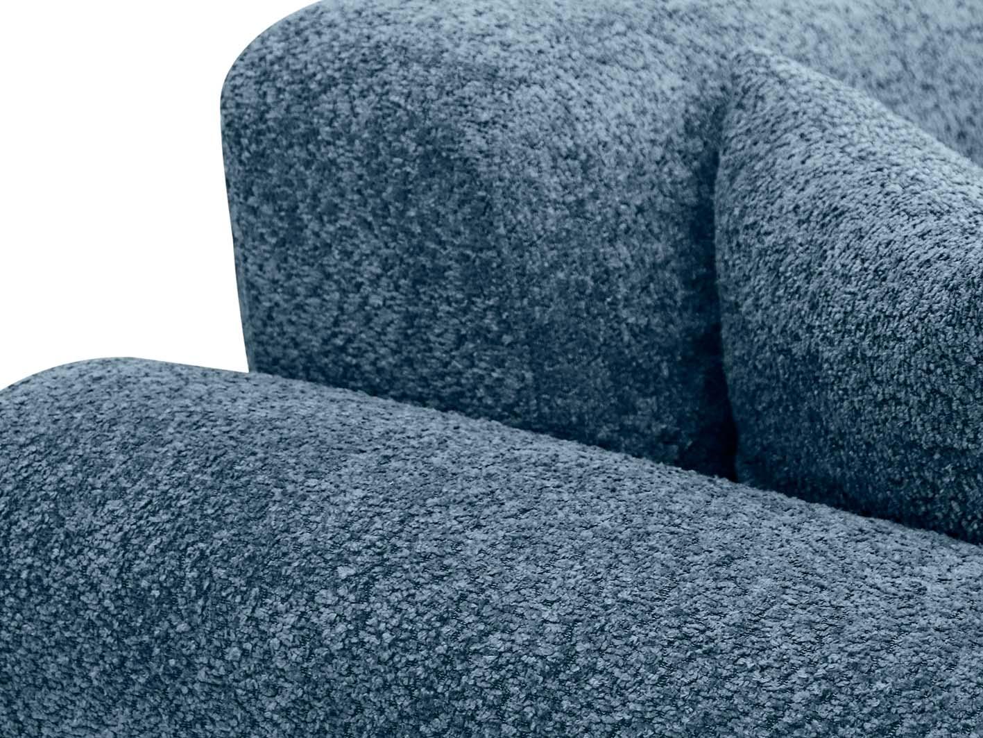3. راحة فائقة مع تنجيد ناعم مُنجّد بقماش البوكلية الناعم الفاخر، الذي يتميز بنعومة ملمسه ومتانته، كما يأتي باللون الأزرق الأنيق الذي يضفي لمسة هادئة ودافئة على مساحتك الداخلية.