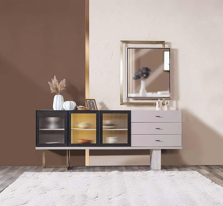 يمثل كونسول مع مرآة جاليا التوازن المثالي بين الأناقة والوظيفة، بفضل تصميمه العصري وخاماته العالية الجودة. يُعتبر إضافة مثالية لأي مساحة داخلية، سواء كانت غرفة المعيشة، المدخل، أو حتى غرفة الطعام، ليمنح منزلك مظهراً عصرياً ومميزاً.