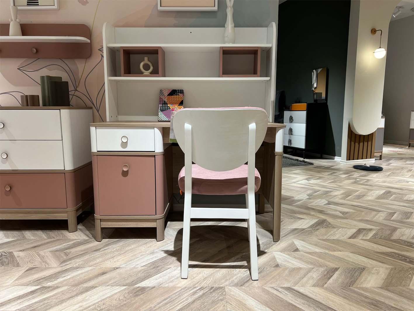 اللون: قاعدة وأرجل بيضاء – مقعد وظهر زهري