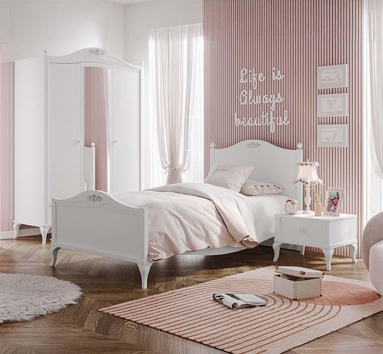 إذا كنت تبحث عن تصميم يجمع بين الجمال الكلاسيكي والوظائف العملية، فإن سرير جاسمين هو الخيار المثالي. الألوان المشرقة والتفاصيل الدقيقة مثل الجوانب المنحنية والزخارف النباتية تجعله قطعة مميزة تضيف لمسة فريدة لغرفة نومك.