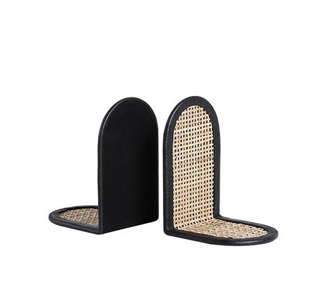 هذا المنتج هو زوج من الحوامل الجانبية للكتب. يتميزان بتصميم أنيق ومزيج من المواد الطبيعية والصناعية. الجزء الرئيسي للحوامل مصنوع من الخشب أو مادة مشابهة بلون أسود غير لامع، مع حواف منحنية على شكل نصف دائرة. الجزء الداخلي مغطى بقطعة من القش المنسوج، مما يضيف لمسة طبيعية ودفء إلى التصميم. تستخدم هذه الحوامل لدعم الكتب على الرفوف، مما يمنعها من السقوط ويوفر ترتيباً أنيقاً ومنظماً. التصميم العصري والبسيط يجعلها مناسبة لأي ديكور داخلي، سواء كان عصرياً أو تقليدياً. يمكن استخدامها كقطعة ديكور مستقلة، سواء كانت تستخدم لدعم الكتب أو لعرض الصور والإطارات الحوامل تأتي على شكل نصف دائرة أو حرف "L" مع قاعدة مستوية وحافة خلفية مستقيمة تنتهي بقوس مستدير. مصنوع من مادة صلبة مثل الخشب أو البلاستيك المقوى، مما يضمن المتانة والثبات. مواصفات المنتج