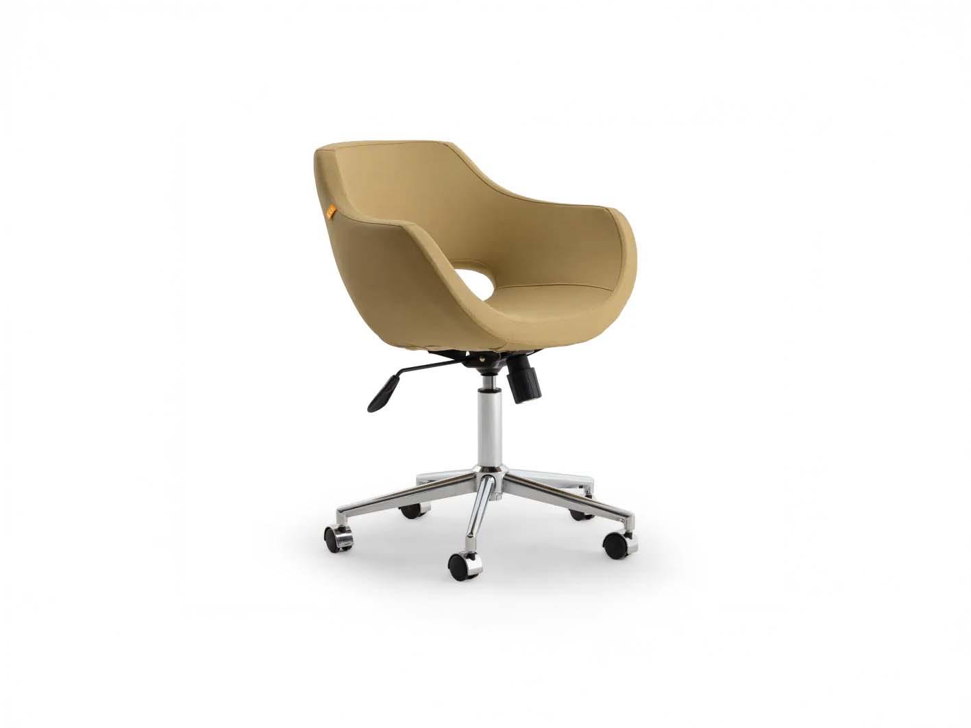 بفضل خاماته عالية الجودة، يأتي الكرسي بهيكل صب إسفنجي من مادة البولي يوريثين أحادية الكتلة، مما يمنح المقعد متانة وشكلًا ثابتًا لا يتأثر بالاستخدام المتكرر. كما أن القماش الجلدي المصنوع من البوليستر بلونه البني الفاتح يضيف لمسة دفء وهدوء إلى أجواء الغرفة.