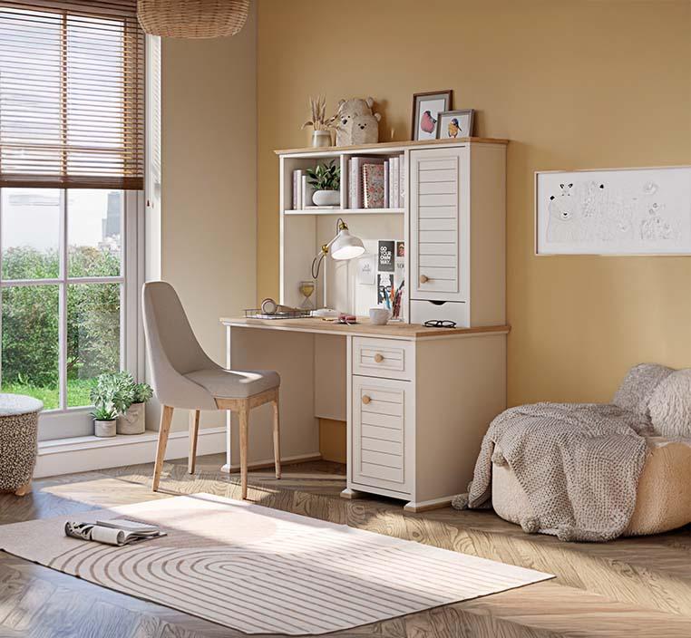 • أسلوب عصري يتناسب مع أي ديكور: يتميز المكتب بألوانه الهادئة وتصميمه العصري الذي يضفي لمسة جمالية رائعة، مما يجعله قطعة مثالية تتماشى مع أي تصميم داخلي لغرفتك أو مكتبك.