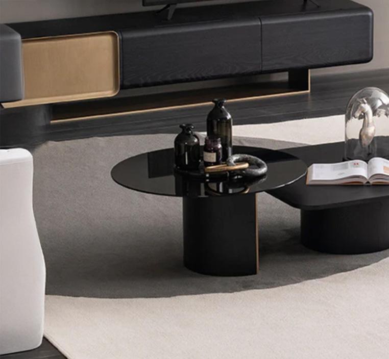 استكمل أناقة غرفة المعيشة مع طاولة القهوة بسطح زجاجي أسود دائري، التي تمزج بين البساطة والرقي في تصميم يلفت الأنظار ويمنح المساحة إحساسًا بالفخامة العصرية. هذه الطاولة هي الخيار الأمثل لمحبي التفاصيل الدقيقة والتصاميم المتقنة، حيث تجمع بين الخامات الراقية والتوازن البصري في أبهى صورة.