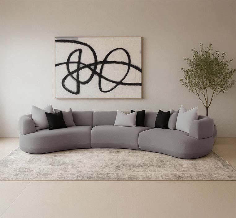 اختر بعناية ليكون أكثر من مجرد كنب، حيث إن خامة البوكلية تضيف ملمسًا دافئًا ولمسة من الفخامة. يتميز القماش بمتانته ومقاومته للاستخدام اليومي، مما يضمن مظهراً أنيقاً يدوم طويلاً. كما أن جودة التصنيع العالية تمنح الكنب ثباتًا ومتانة تجعله استثمارًا عمليًا يدوم لسنوات.