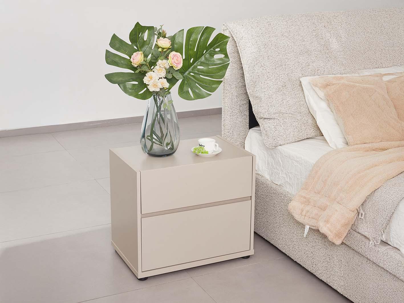 راحة واستخدام عملي: السرير المزدوج مع طاولتي سرير جانبيتين ووحدة أدراج توفر لك راحة استثنائية ومساحة تخزين إضافية.