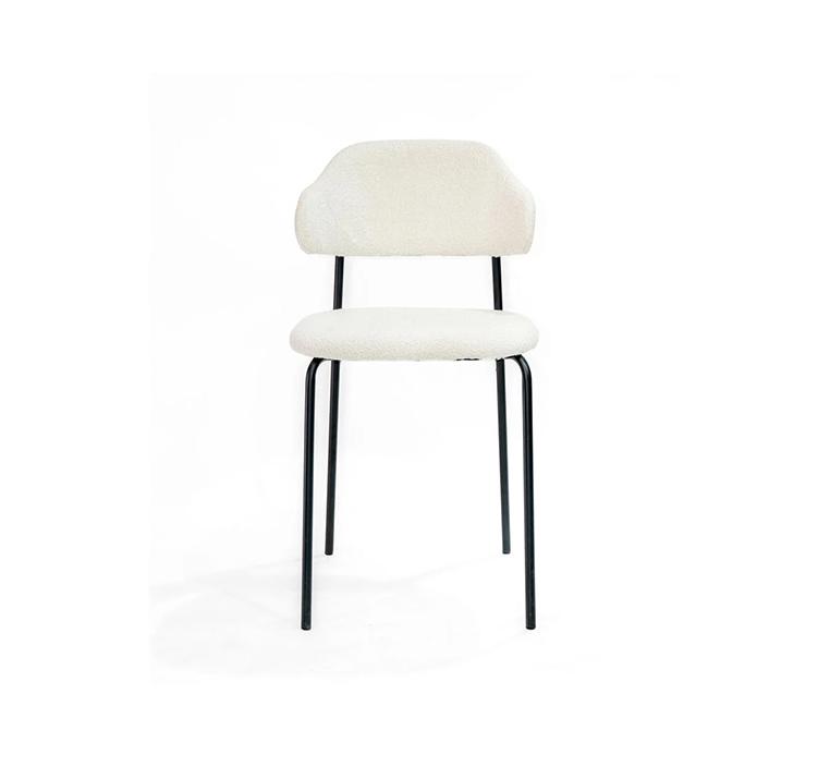 كرسي طاولة طعام أنيق بخامة بوكليه وأرجل معدنية سوداء – لمسة راقية لكل ركن