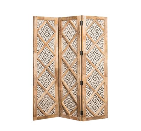 قاطع فربنا المميز في تصميمه يأتيك هذا القاطع أو المقسم بثلاث ألواح بشكل هندسي مصنوعة من خشب شجرة المانجو الطبيعية وخيوط القطن المنسوجة بداخلة مناسب هذا القاطع القابل لطي لتحديد المساحات الضيقة أو كتقسيم لغرفتك بشكل مثالي مناسب وملائم لأغلب قطع الأثاث.