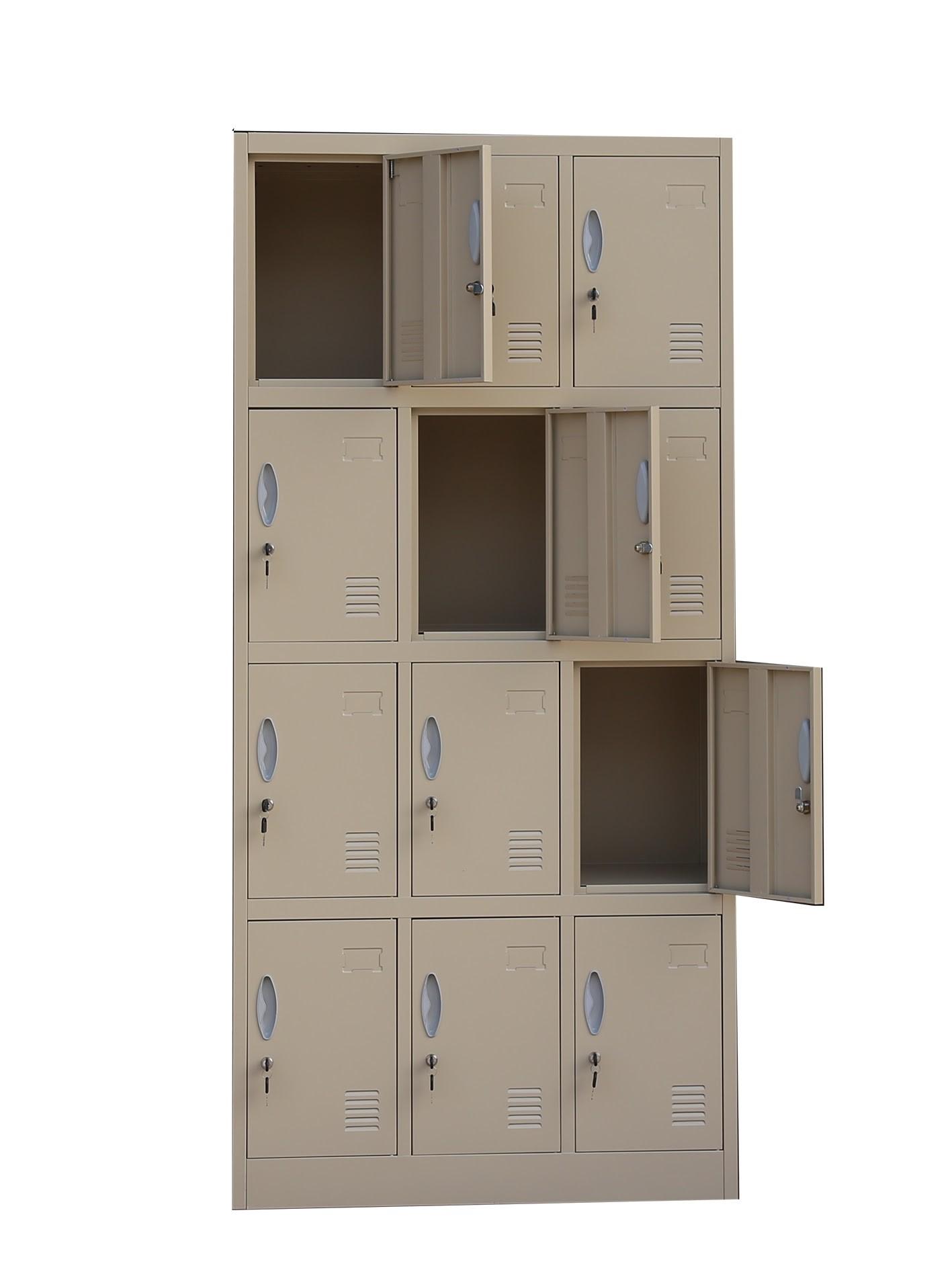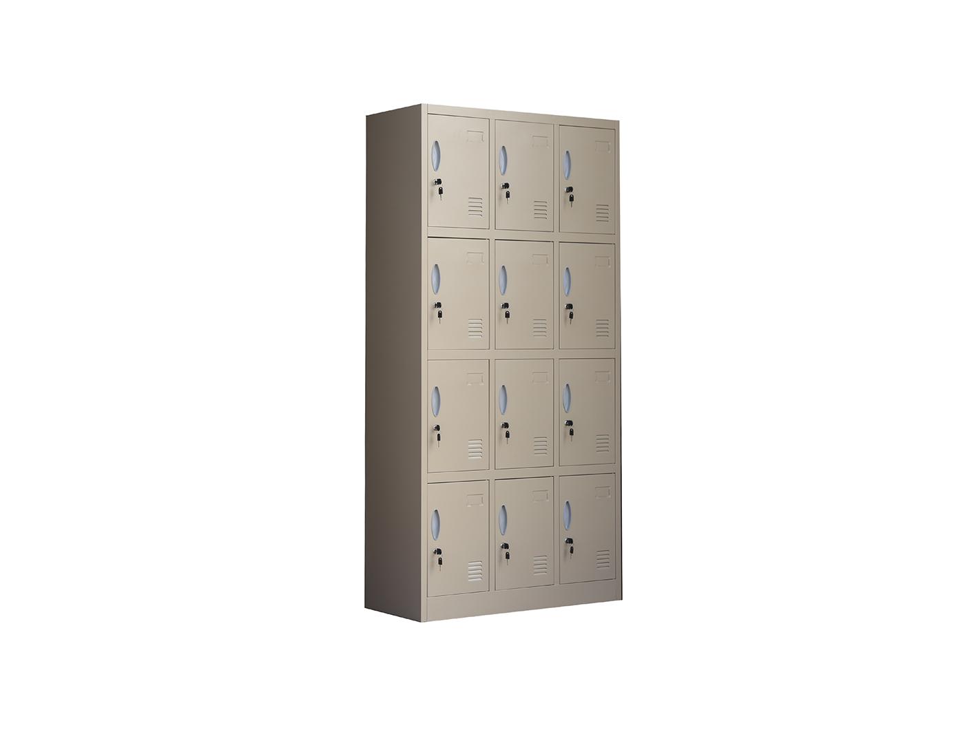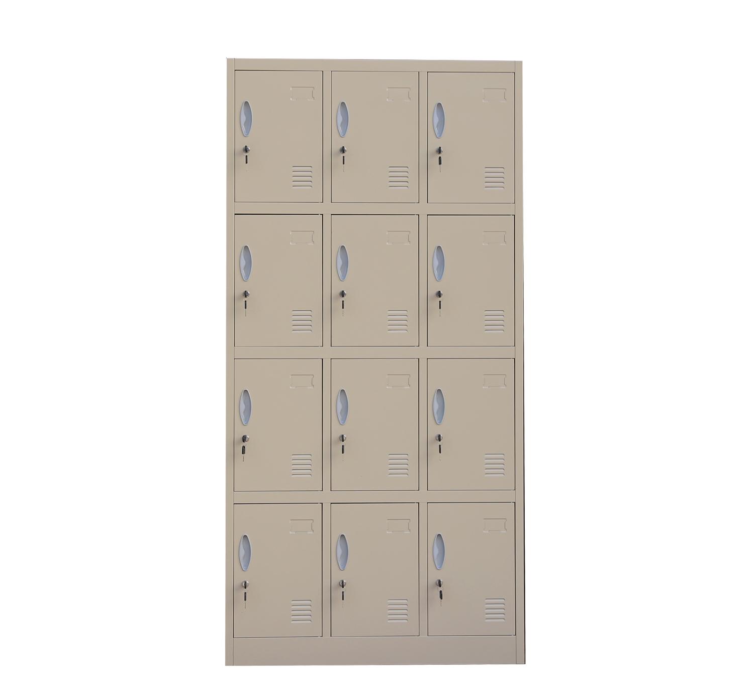 يتوفر أيضًا إصدار من الدولاب الحديدي مكوّن من 12 درج تخزيني عملي، مع قفل مستقل لكل درج لتأمين المحتويات. يعد هذا التصميم مثاليًا للاستخدام في المستشفيات، المدارس، الجامعات، مكاتب الموظفين، وبيئات العمل التي تتطلب تخزينًا شخصيًا وآمنًا. بلونه البيج الجذاب، يضفي لمسة من الأناقة على المكان، ويُستخدم بكفاءة كـ دولاب حديد للمستشفيات أو خزانة ملابس للشركات أو دولاب حديد للموظفين.