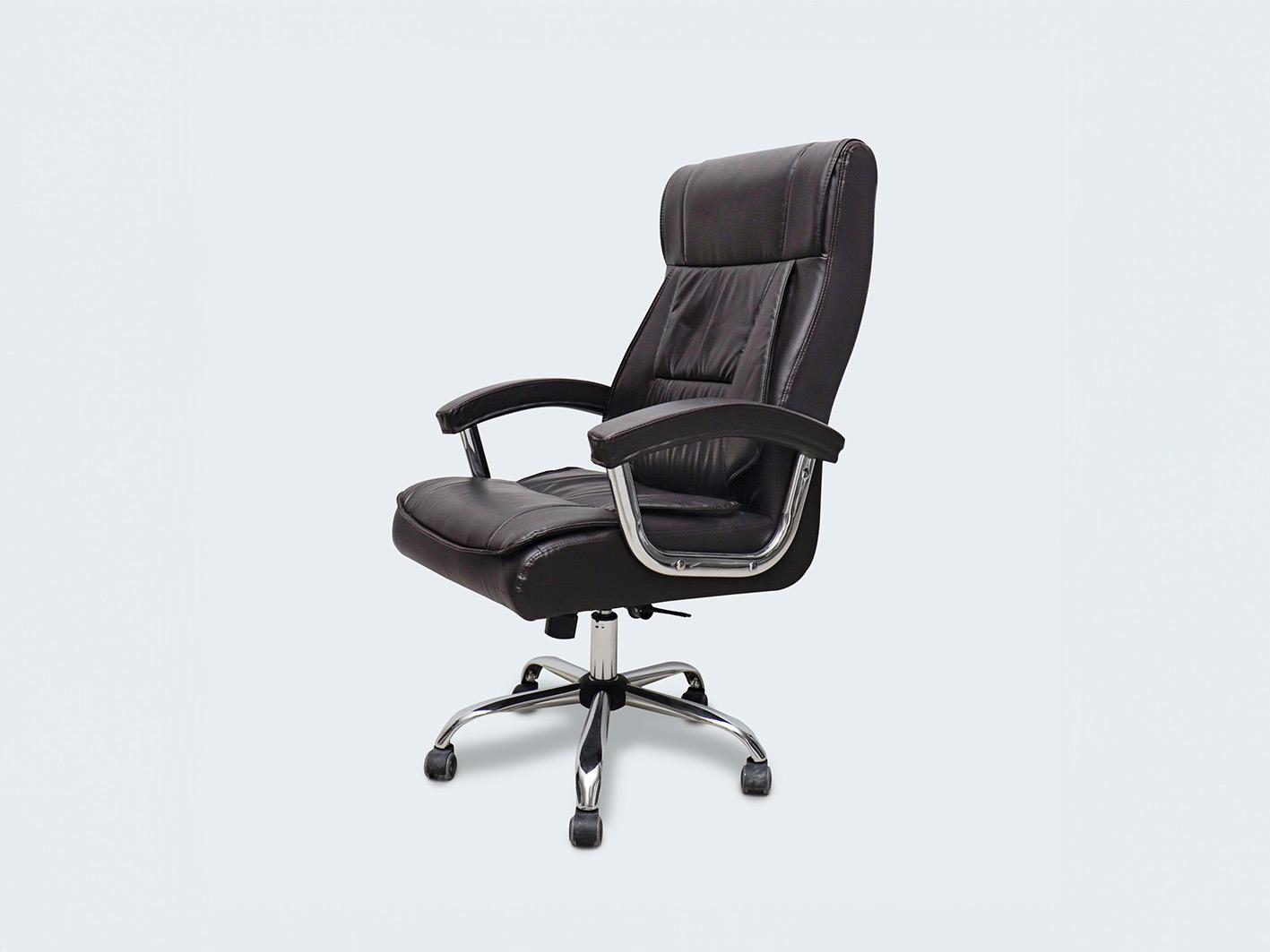جلد فاخر باللون البني: يتمتع هذا الكرسي بتنجيد عالي الجودة من الجلد الفاخر الذي يضفي مظهرًا راقيًا ويمنح إحساسًا مريحًا ودافئًا. اللون البني الكلاسيكي يضيف لمسة من الأناقة المتطورة لأي مكتب.