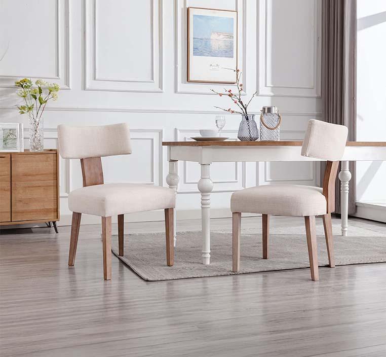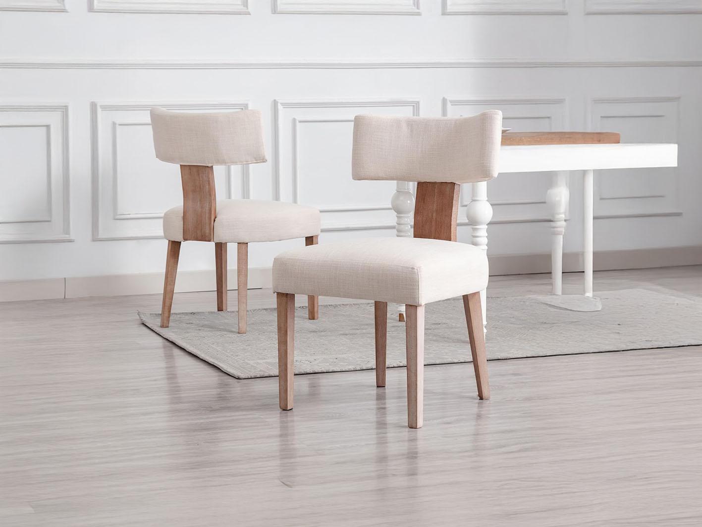 يتميز الكرسي بغطاء تنجيد مصنوع من البوليستر، وهي خامة عملية وناعمة الملمس، تضفي إحساسًا مريحًا مع سهولة العناية والتنظيف، مما يجعله مناسبًا للاستخدام اليومي. أما أرجل الكرسي، فهي مصنوعة من خشب السولد القوي والمتين، مما يمنح الكرسي ثباتًا واستقرارًا عاليين، بالإضافة إلى لمسة طبيعية راقية تعزز جماله.