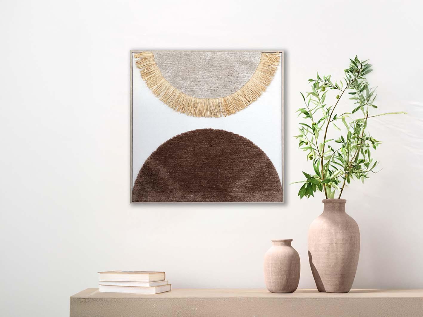 تصميم بسيط وأنيق: تعتمد اللوحة على الأشكال الدائرية بألوان محايدة، مما يجعلها قطعة فنية مثالية للتنسيق مع أي نوع من الديكورات العصرية أو الكلاسيكية.