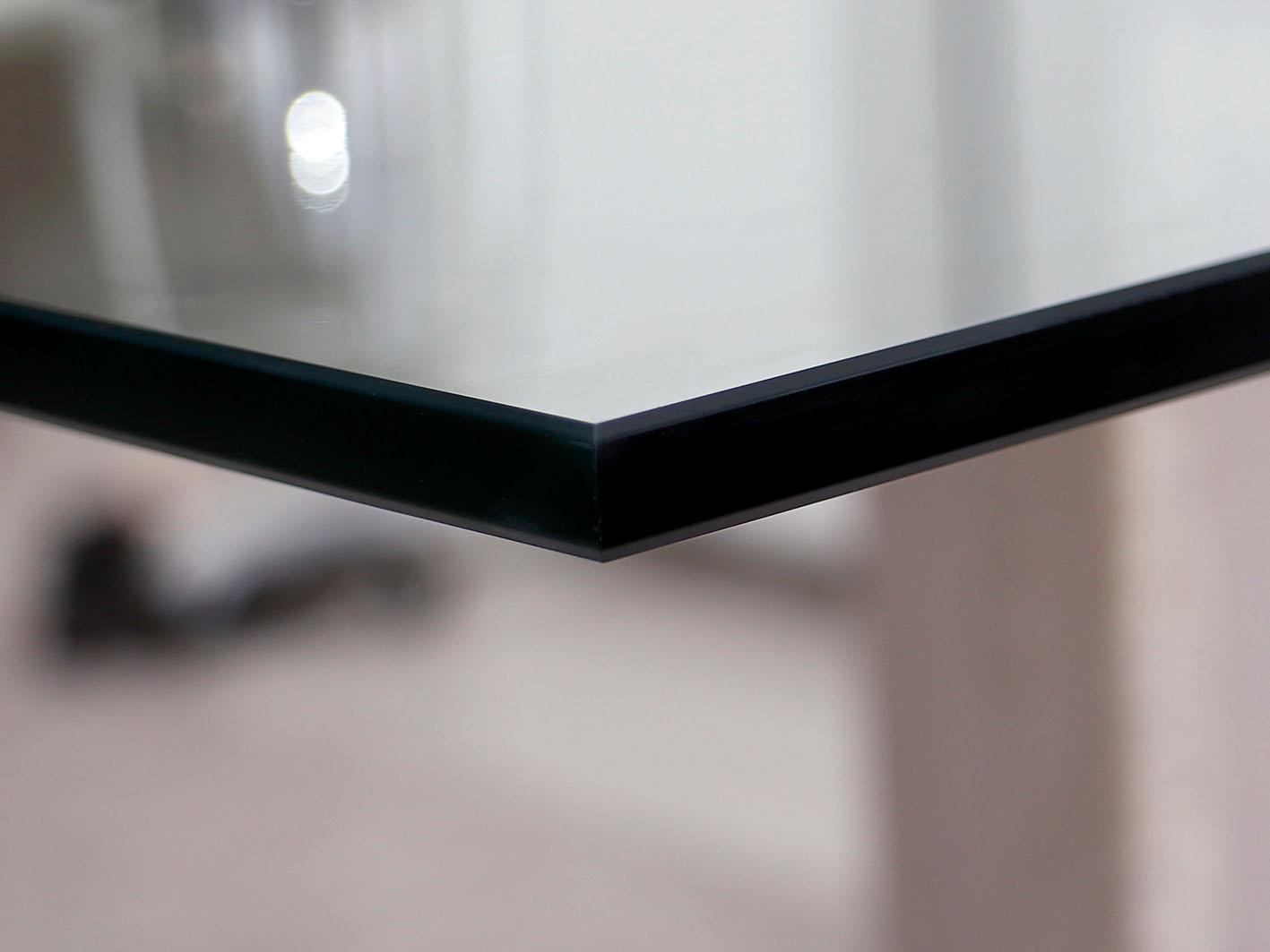 • سطح زجاجي شفاف يضفي إحساساً بالاتساع ويسهل تنظيفه.