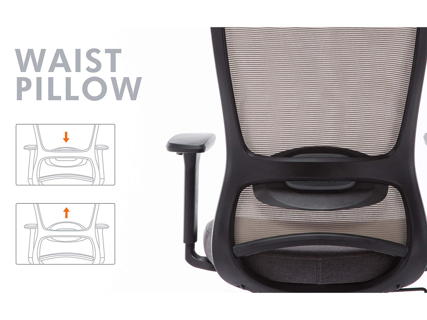 إطاره مصنوع من النايلون الأسود المتين. كما أنه مزود بشبكة هوائية تسمح بمرور الهواء للحفاظ على الانتعاش. بالإضافة إلى ذلك، توجد دعامة قابلة للتعديل لتدعم العمود الفقري وتحافظ على جلستك الصحية.