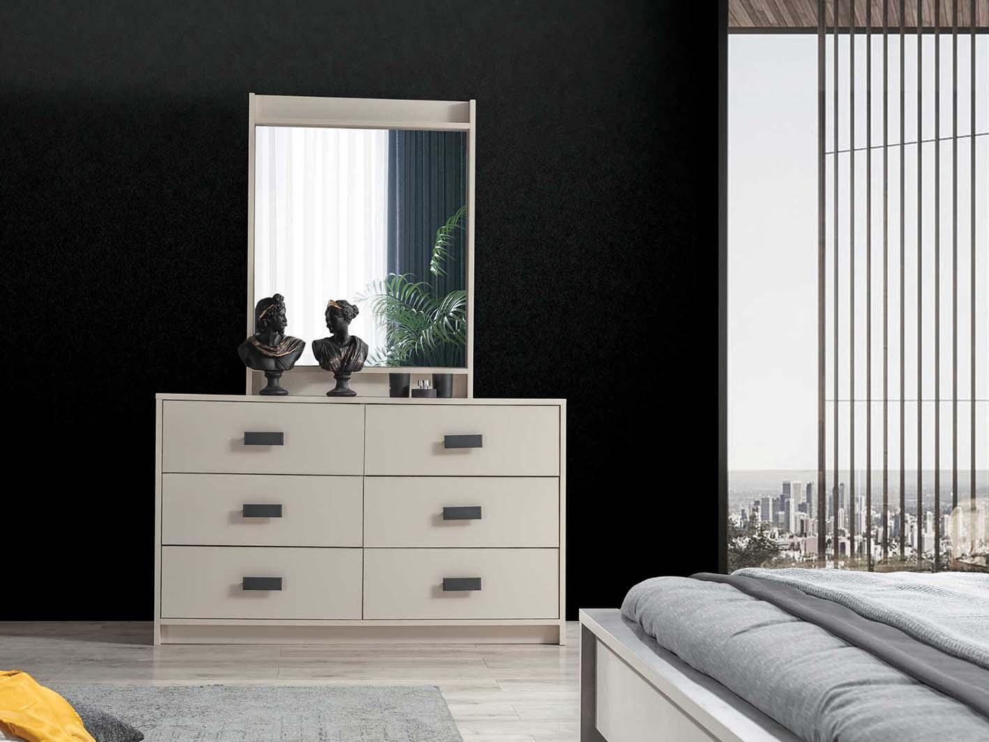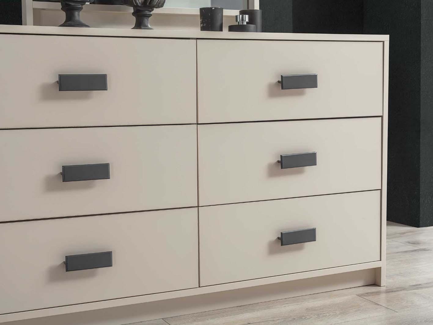 تم تصنيع طقم غرفة نوم "مومينتم" من خشب الميلامين عالي الجودة، المعروف بمتانته وقدرته على التحمل، مما يضمن لك استثماراً يدوم لسنوات طويلة. يتميز بلونه الكريمي الجذاب الذي يتناغم بسهولة مع مختلف أنماط الديكورات الداخلية، سواء كانت كلاسيكية أو عصرية.