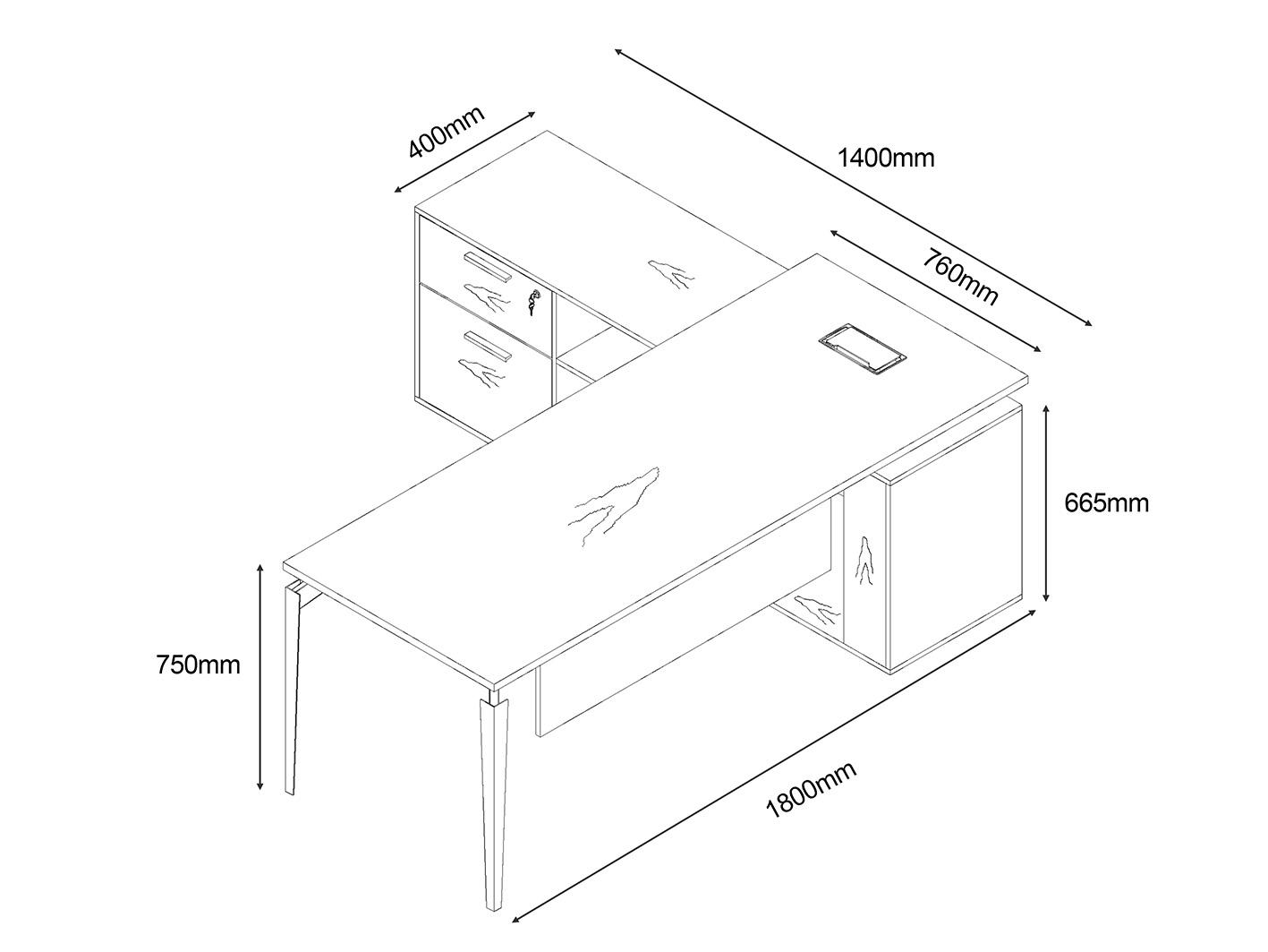 • مكان مخصص للأفياش: يتميز المكتب بوجود مكان مخصص لتنظيم الأسلاك وتوصيلات الأجهزة الكهربائية، مما يحافظ على سطح مكتب نظيف ومنظم.