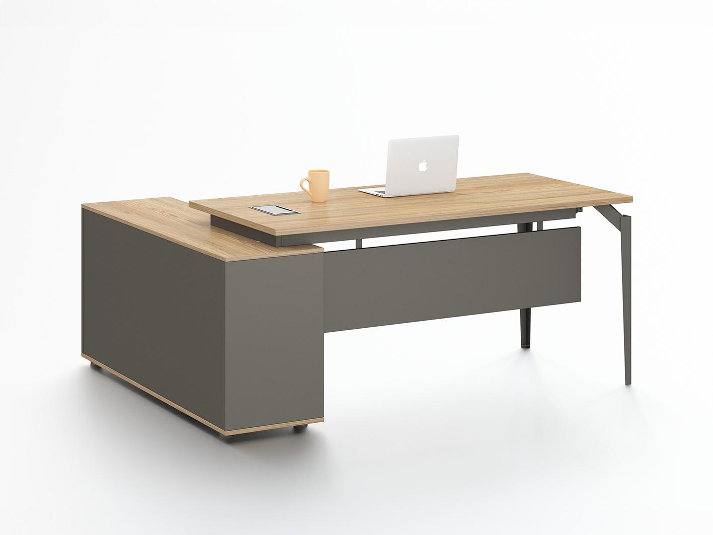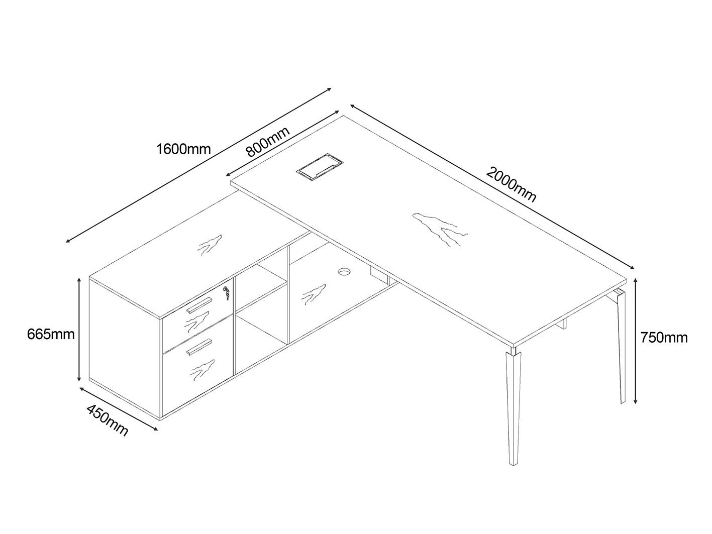 • مكان مخصص للأفياش: يتميز المكتب بوجود مكان مخصص لتنظيم الأسلاك وتوصيلات الأجهزة الكهربائية، مما يحافظ على سطح مكتب نظيف ومنظم.