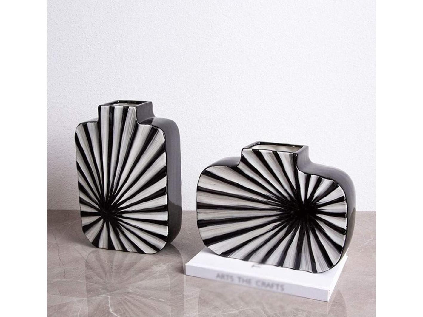 استمتع بإضافة هذه المزهرية الفريدة والأنيقة إلى تصاميمك الداخلية.تصميمها المميز من السيراميك المزخرف باللون الابيض والاسود سيضفي لمسة من الأناقة على أي غرفة. تعمل بساطة التصميم والتباين في الألوان على خلق جو جذاب ومهدئ للعين. يتيح لك التنوع في استخدامها وضعها في مختلف البيئات، من غرف المعيشة إلى مناطق تناول الطعام، مما يجعلها إضافة متعددة الاستخدامات لأي منزل.