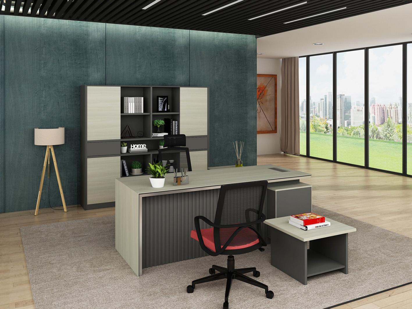 تصميم عصري وأنيق: اللون الرمادي الأنيق يجعل المكتب متناسبًا مع مختلف أنماط الديكور الحديثة، ليضفي لمسة من الفخامة على مساحتك.