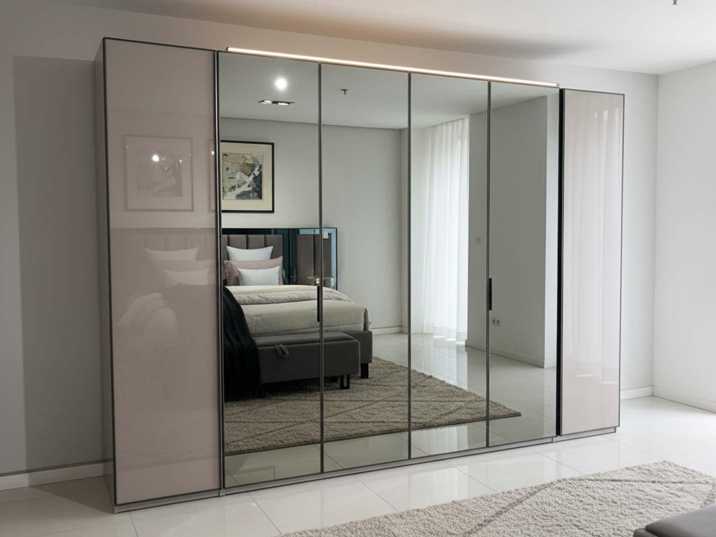 مرآة كبيرة لراحة أكثر: يتمتع الدولاب بأبواب مزودة بمرايا كبيرة على الواجهة التي تضاعف من المساحة البصرية للغرفة. توفر لك هذه المرايا تجربة عملية من خلال إمكانية استخدامها كمرآة شخصية لإلقاء نظرة نهائية على مظهرك أثناء اختيار الملابس.