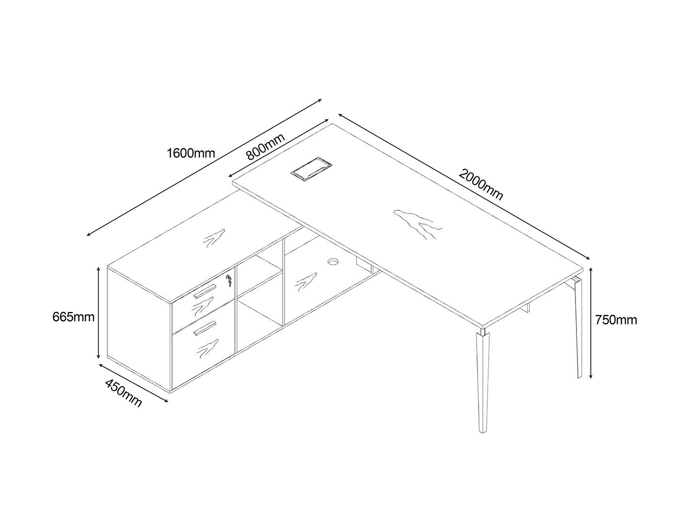 مكان مخصص للأفياش: يتميز المكتب بوجود مكان مخصص لتنظيم الأسلاك وتوصيلات الأجهزة الكهربائية، مما يحافظ على سطح مكتب نظيف ومنظم.