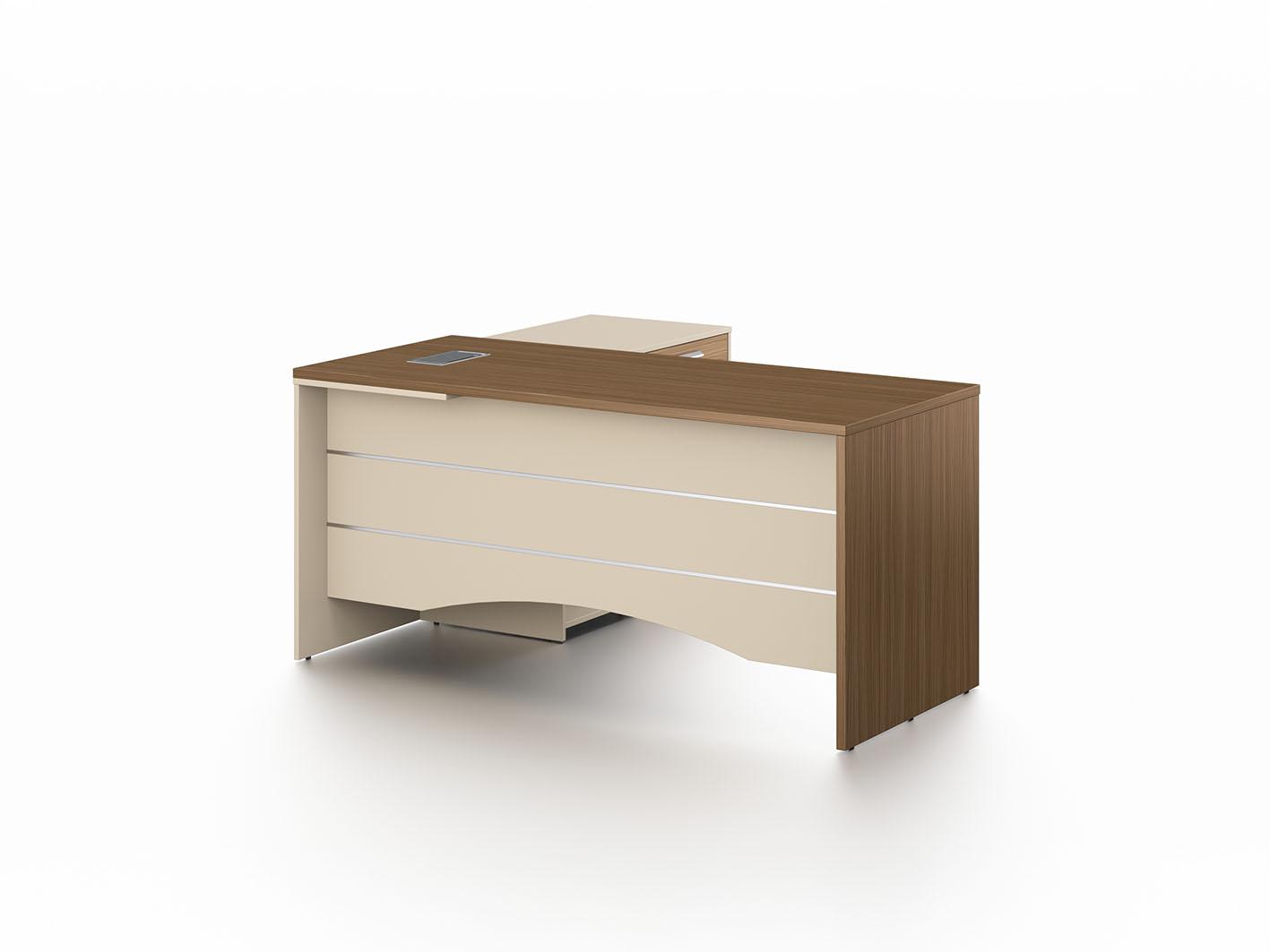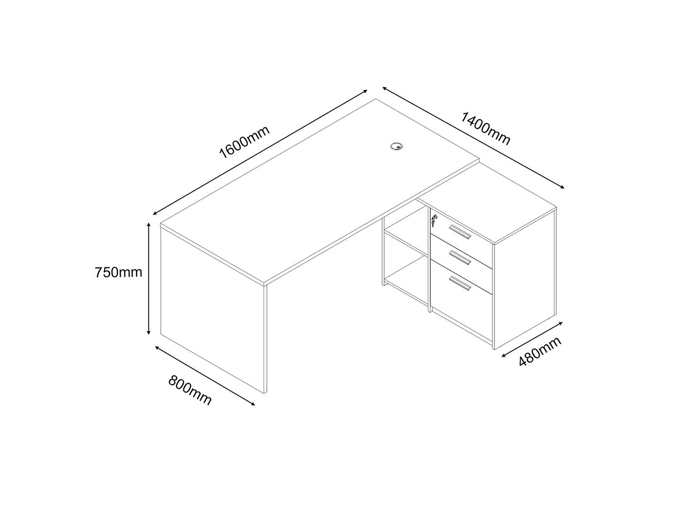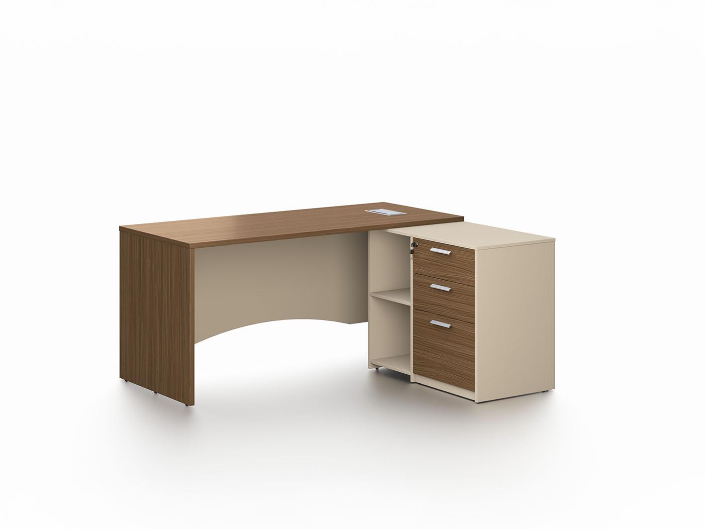 2. وحدات تخزين مرنة: يضم درجًا مزودًا بقفل ومقبض من الألمنيوم، بالإضافة إلى رفوف جانبية لتخزين الملفات والمستلزمات الأخرى. منزلقات الأدراج ثلاثية التحمل تضمن حركة سلسة ومريحة.